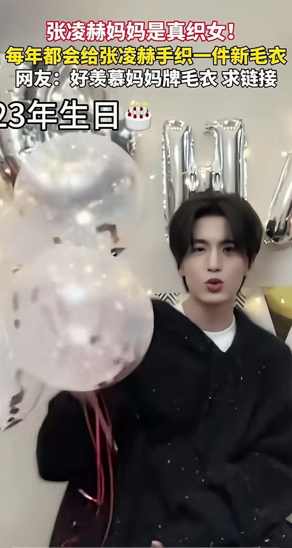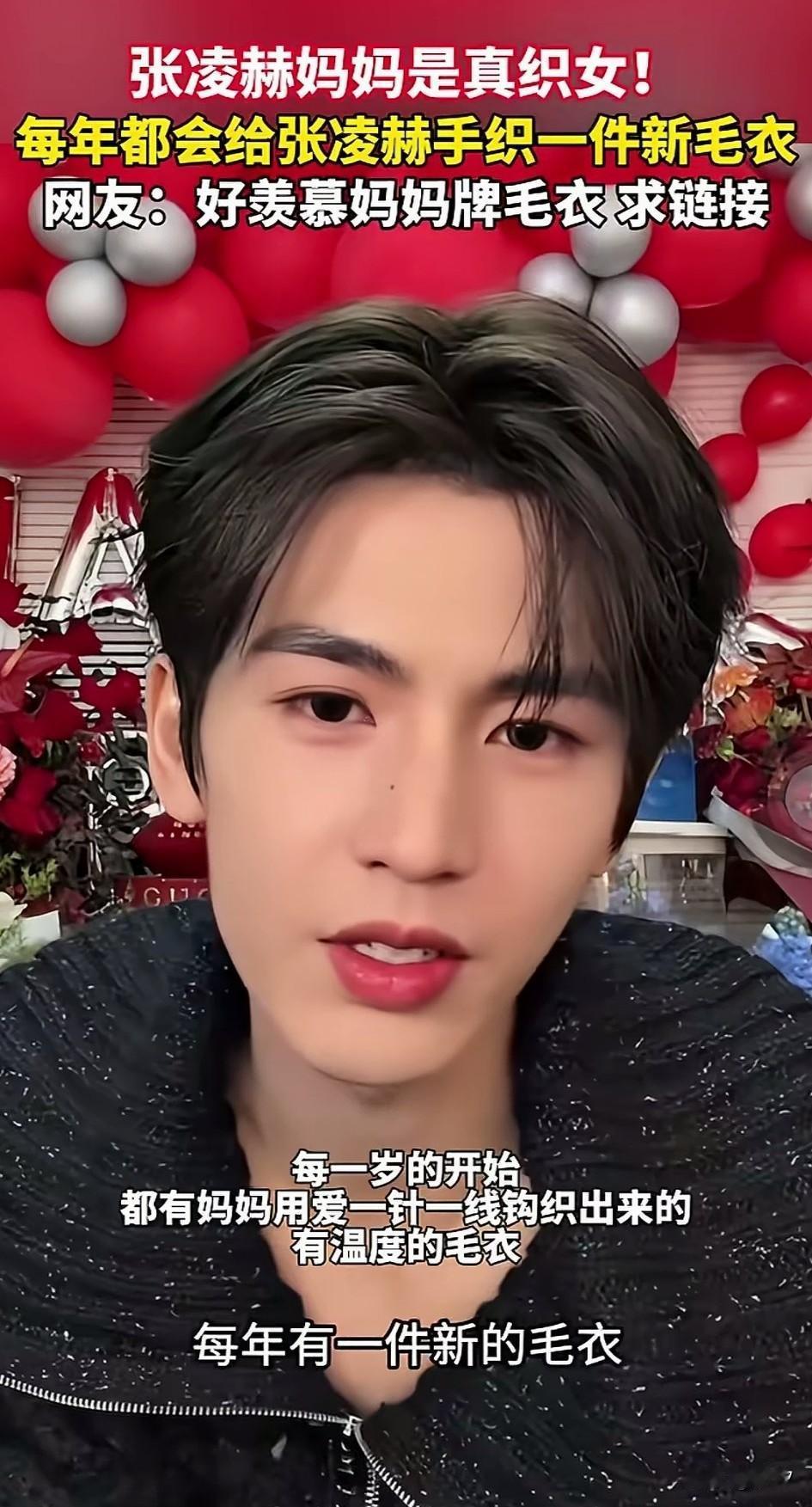 原来明星也喜欢炫耀自己的妈妈, 帅哥张凌赫在自己28岁生日的时候, 当着直播间的网友面, 开始炫耀自己的妈妈, 他表示自己的毛衣是妈妈给他织的。 然后拉开了毛衣的衣领, 让大家看好不好看, 还表示自己的妈妈很爱自己, 每年都会给他织一件新毛衣, 网友也翻出了他之前过生日的照片, 发现确实每年都会有一件新毛, 他的粉丝表示他的妈妈就是织女, 有粉丝很喜欢他妈妈牌子的男子, 还喊着让他上链接, 把他都给逗笑了, 明星实际上和常人一样, 只不过是因为工作的原因, 挣钱多,曝光多, 他们实际上也很喜欢亲情, 毕竟亲情是人类永恒的爱, 即便是张凌赫这样的明星也不例外, 时不时的秀一下自己的妈妈, 也会让他的人设变得非常的正面, 大家觉得张凌赫的妈妈手艺怎么样?