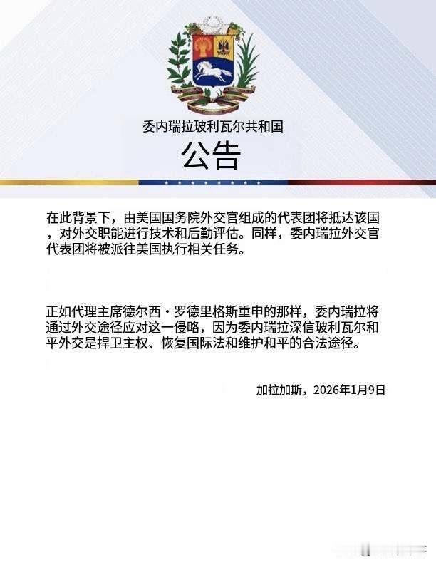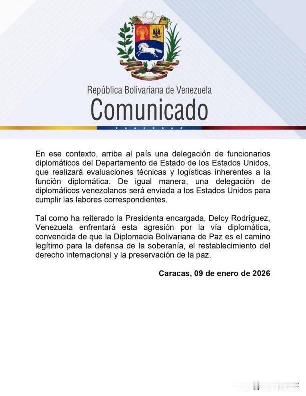 🇻🇪🇺🇸委内瑞拉政府宣布与美国开启“研究性外交进程”。美国国务院的外交官代表团已抵达委内瑞拉,将对外交职能相关事宜进行评估。
