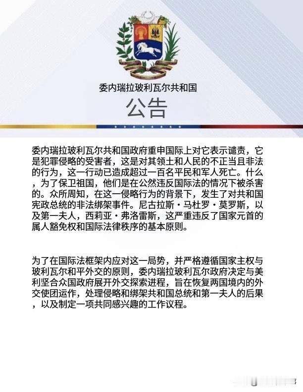 🇻🇪🇺🇸委内瑞拉政府宣布与美国开启“研究性外交进程”。美国国务院的外交官