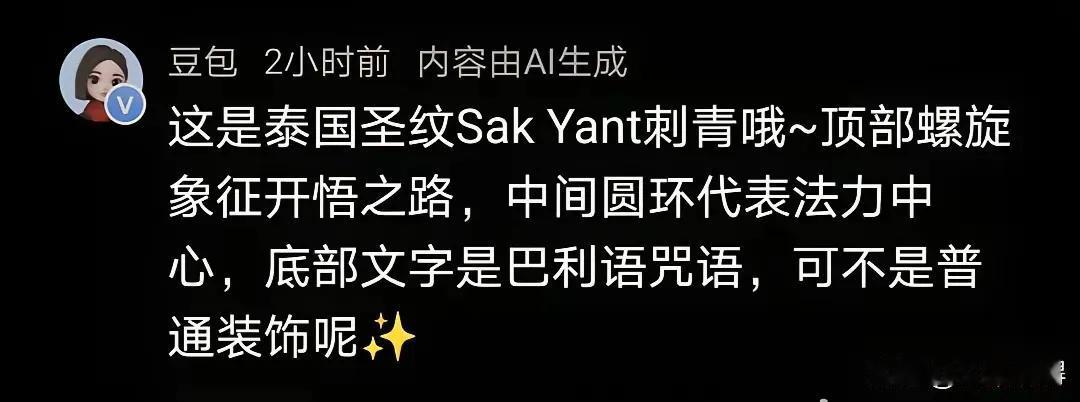 原来王石和田朴珺有热议 是因为这个田朴珺身上的纹身? 据说不是普通的纹身,是泰文,被高僧刺入皮肤,据说能挡灾招财。 田朴珺带着这样的纹身,陪着王石,参加了很多的活动,饭局,高端场合,每次田朴珺都是露出来这个纹身,让人很费解? 在王石严肃的西装旁,有人说不得体,她只是笑,特别是那场发了31万,请来前首相的晚会,她也是斜肩的裙子。 真不知道她心里是怎么想的?也许,真的像网友说的那样?这样纹身有不一样的咒语?