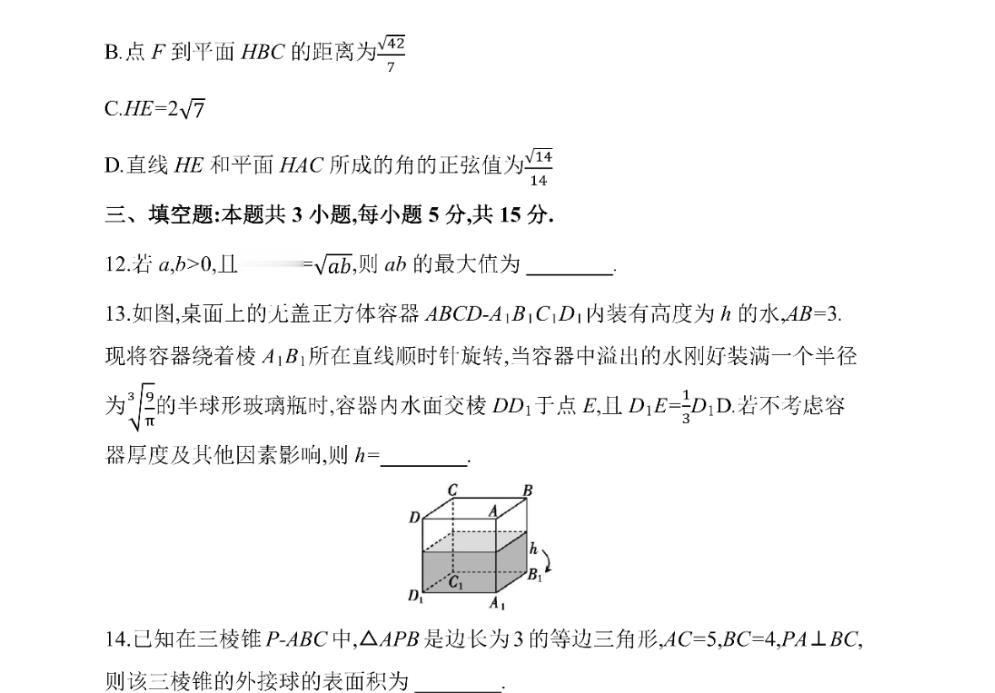 2026届皖豫联考高三上学期11月期中考试单选题6、7、8,多选题10、11,填空题12、13、14题以及详细解答。
