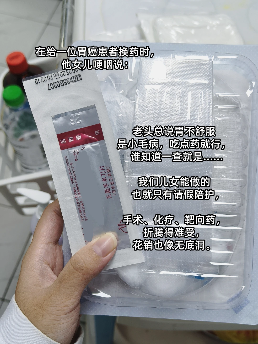 前段时间在胃外科病房实习,给一位胃癌患者换药时,他女儿哽咽说:“老头总说胃不舒服是小毛病,吃点药就行,谁知道一查就是……我们能做的也就只有请假陪护,手术、化疗、靶向药,折腾得难受,花销也像无底洞。”