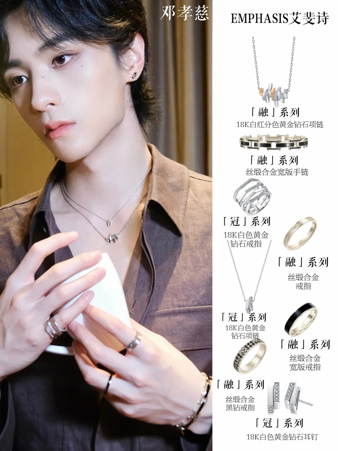 孟佳不愧是初代女团全能ACE,除了抗打的业务能力,审美也很高级;全包眼妆,叠戴「融」系列珠宝,又酷又帅,气场全开! 这套配饰全部来自周生生旗下的EMPHASIS艾斐诗,黄金+钻石的设计,一整个拿捏🫴住当代年轻人,保值又时髦 像恩利、汪铎、全伊伦和邓孝慈这些新生代小生,也都有上身过;解构的设计,不分性别,都能完美hold住,无论什么时候拿出来,都跟百搭又高级