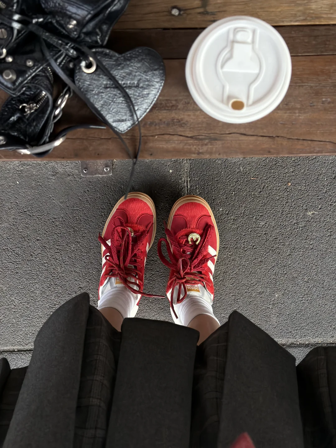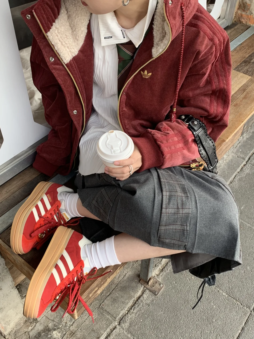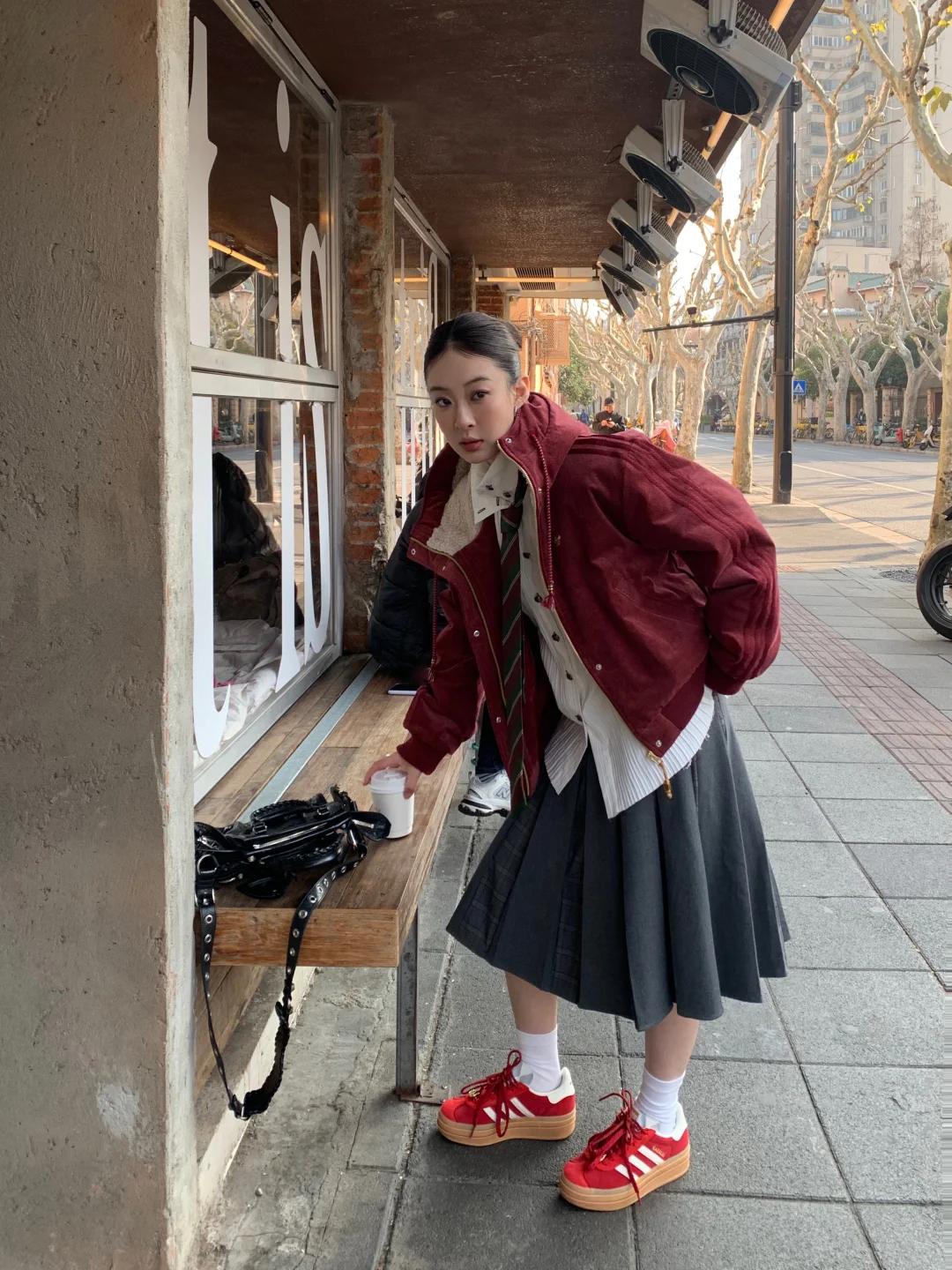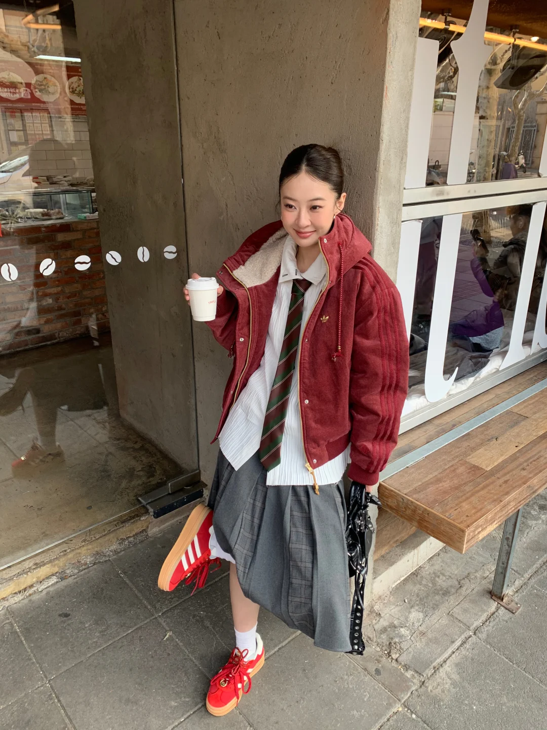 出门溜达喝咖啡 偶遇到了超乖的小狗 配合姐姐拍照拍了好久🥰 新年新气象! 马年给自己安排了一件三叶草红外套 还搭配了马年限定红色T头鞋 希望自己今年可以像这套look一样红红火火,脚步生风