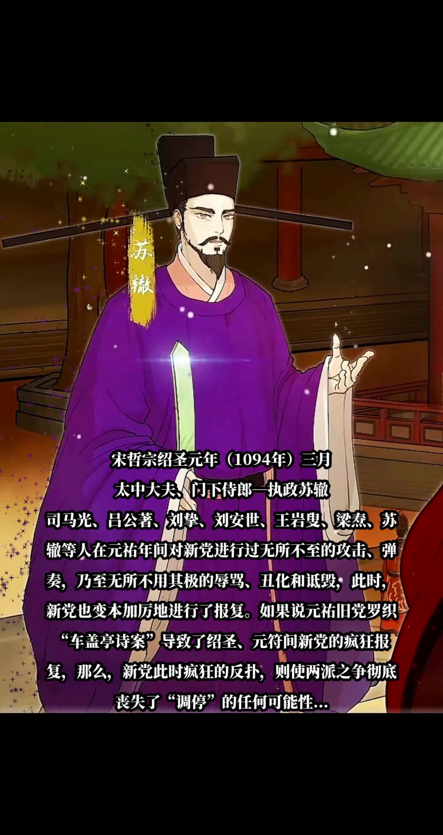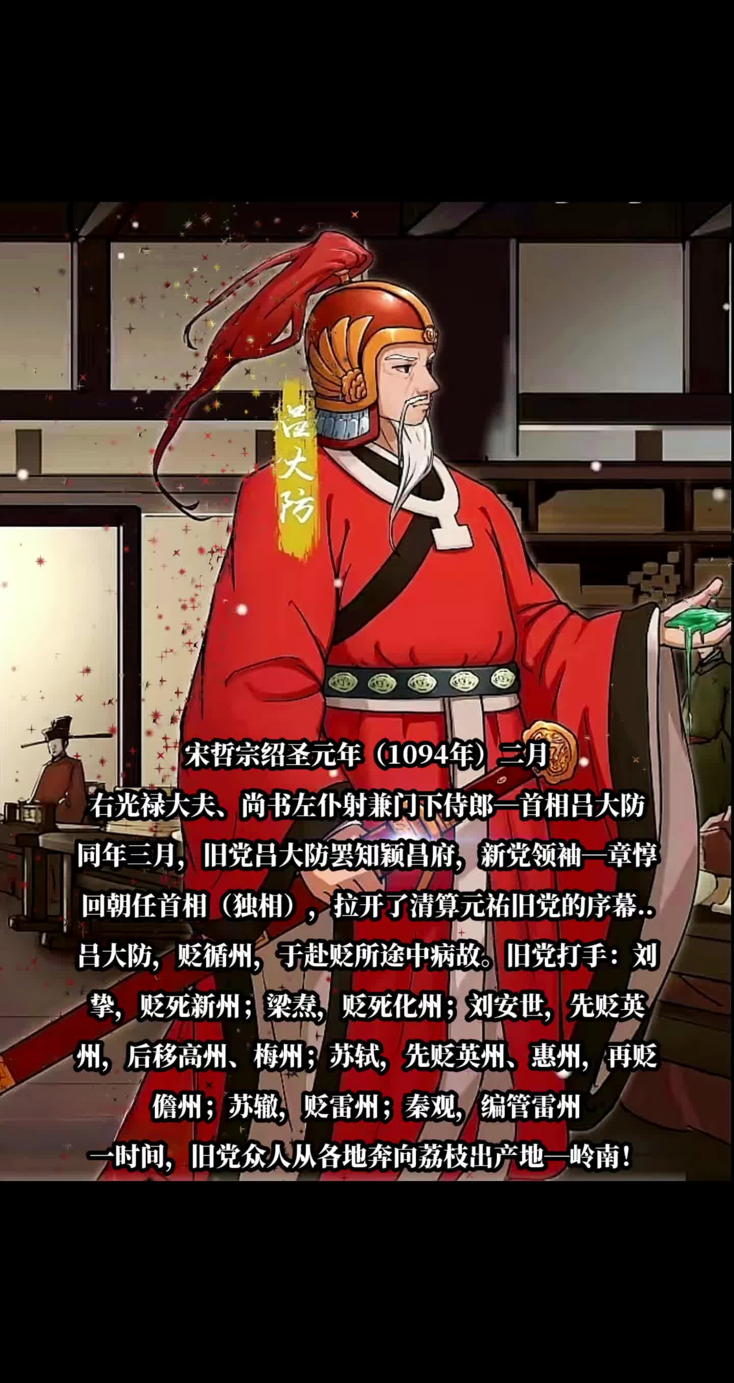 宋哲宗元祐八年(1093年)哲宗的祖母太皇太后高氏去世,哲宗开始亲政..