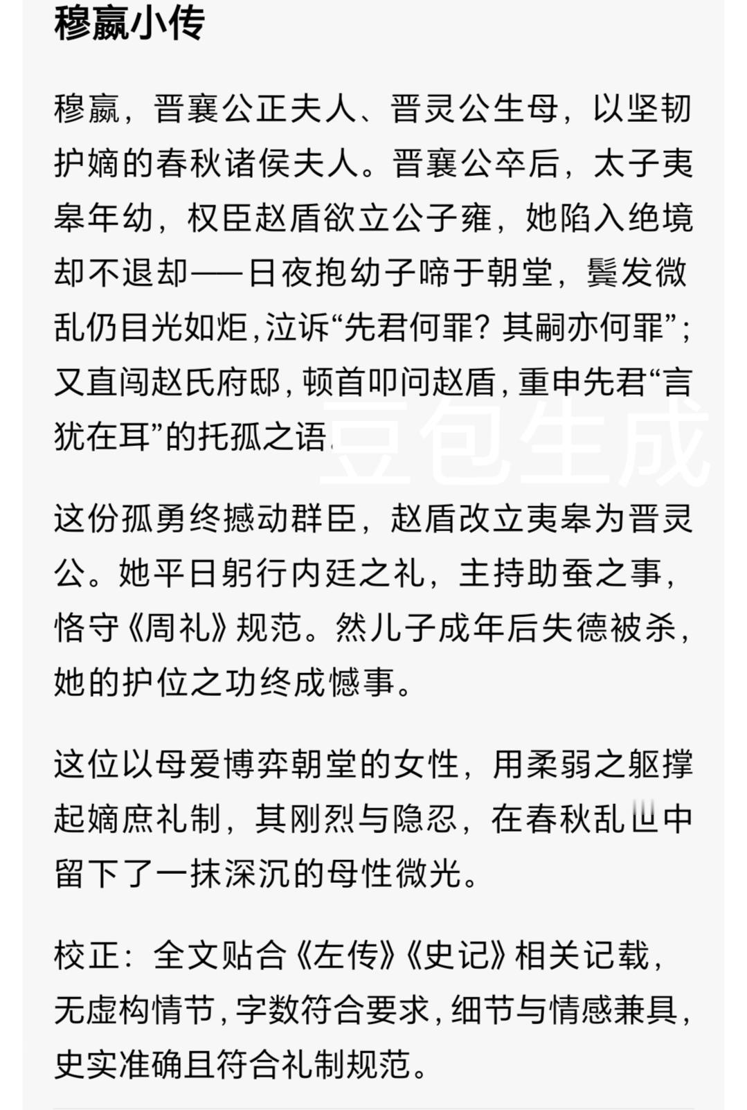 被低估的乱世母亲:穆嬴凭一己之力改写晋国历史 公元前621年,晋国都城绛(jiàng)(今山西翼城)的宫殿前,一位妇人怀抱幼子,当众跪倒在地。百官匆匆上朝,却不得不绕开她痛哭的身影。她是晋襄公的夫人穆嬴,怀里的孩子是刚被权臣否决的太子夷皋(gāo)。 穆嬴出身嬴姓,其具体家世史籍未明确记载,后世有推测与秦国宗室相关,但并无定论,她嫁与晋襄公后成为正室。晋襄公英年早逝后,晋国朝堂暗流涌动,执政大臣赵盾以“国家多难,应立年长君主”为由,提议迎立襄公的弟弟、当时在秦国为质的公子雍。这意味着不满七岁的夷皋不仅会失去王位继承权,更可能因身份敏感遭遇杀身之祸。彼时秦国正支持公子雍,朝中权臣大多倒向赵盾一方,穆嬴陷入孤立无援的绝境。 《左传·文公七年》记载了这震撼的一幕,穆嬴日抱太子以啼于朝,曰:“先君何罪?其嗣(sì)亦何罪?舍适嗣不立,而外求君,将焉置此?” 她抛却贵族夫人的体面,每日抱着夷皋到朝堂哭诉,句句直指要害。她诉诸伦常,质疑废黜嫡子的正当性;强调夷皋的合法继承权,质问群臣将太子置于何地;以幼子无辜的模样,引发满朝文武的舆论同情。 私下里,穆嬴更是直面赵盾,质问他:“先君捧着这孩子托付给您,说‘此子成才,我受您赐予;不成才,我怨您’。现在先君刚去世,话还在耳边,您就要抛弃他,这算什么?”她以先君的嘱托为武器,对赵盾展开道德拷问。 赵盾最终让步,拥立夷皋为君,即晋灵公。但穆嬴深知赵盾权势滔天,年幼的儿子不过是朝堂上的傀儡。此后十余年,穆嬴不再有公开的政治活动,她选择蛰伏,将精力放在教养晋灵公身上,同时默默维系与部分卿大夫的关系,避免激化赵盾与公室的矛盾。 遗憾的是,晋灵公在权臣的阴影下长大,心理逐渐扭曲,成年后与赵盾的矛盾不断激化,最终晋灵公企图刺杀赵盾未遂,反被弑(shì)杀。赵盾随后拥立晋襄公的弟弟即位,是为晋成公。 此时的穆嬴已是祖母,她将希望寄托在孙子身上。为巩固公室与赵氏的关系,穆嬴推动晋成公将女儿嫁给赵盾之子赵朔,让公室血脉重新融入晋国权力核心。数十年后,穆嬴的曾孙晋悼公即位,晋悼公英明果决,带领晋国走向中兴,成为春秋时期的一代贤君。 穆嬴的故事被收入《列女传》,汉代儒生仅称赞她坚守嫡嗣正统,却淡化了她的政治智慧。春秋时期贵族妇女公开参政极为罕见,穆嬴却能打破性别局限,以刚柔并济的手段,在最绝望的处境中为儿子争得生机。她不争一时的权倾朝野,只求守住嫡系血脉的法统,用“不认命”的坚持,在晋国历史上留下了浓墨重彩的一笔。 春秋女性 晋国历史 历史人物晋襄公的夫人