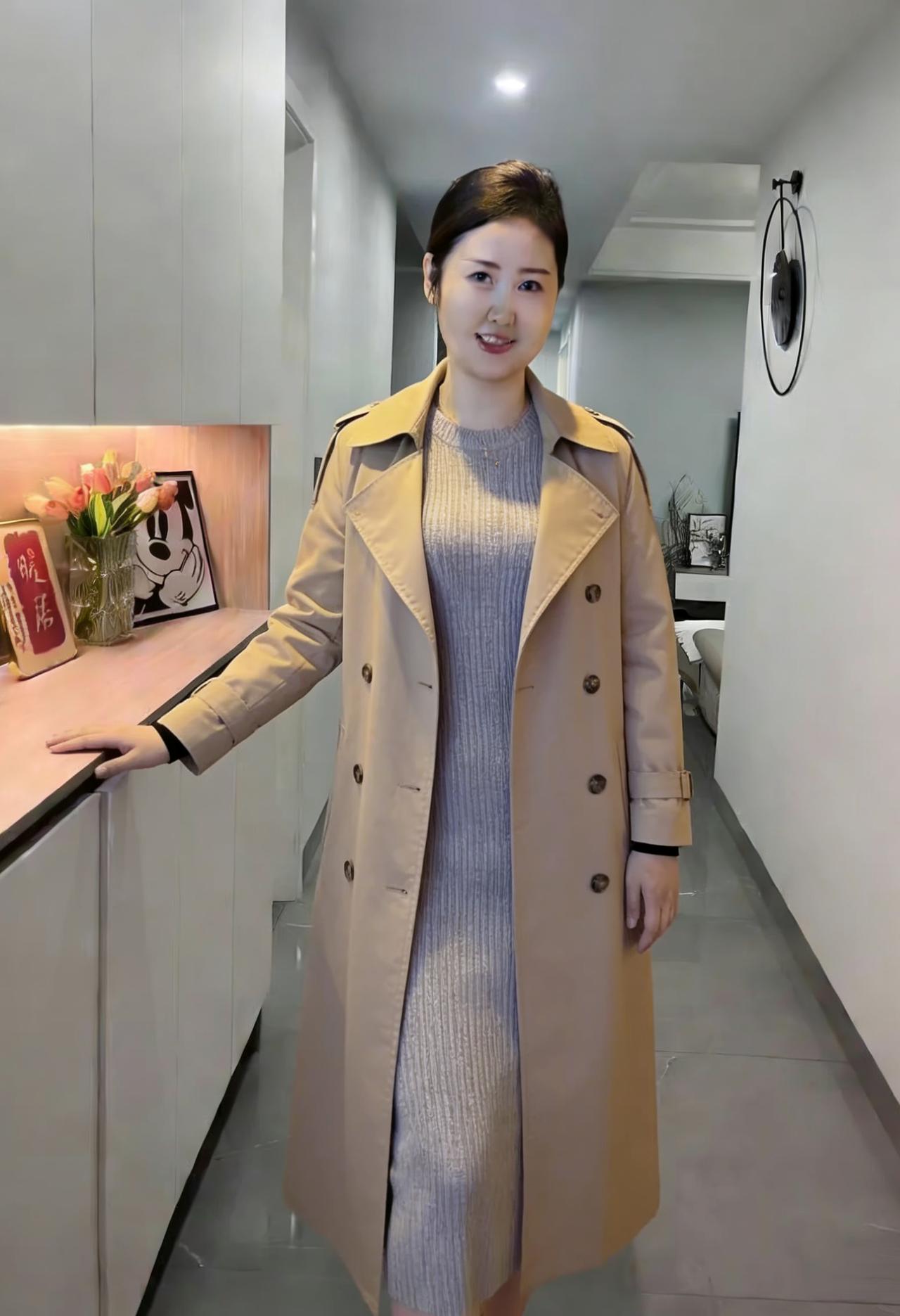 驼色风衣立暖厅,瓶花微绽暗香萦。 一回眸处春风起,无需丹青画里行。
