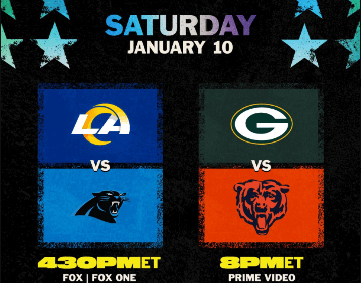 虎扑01月10日讯明日NFL季后赛外卡轮,洛杉矶公羊VS卡罗莱纳黑豹队黑豹(北京时间1月11日5:30开赛),绿湾包装工VS芝加哥熊(9:00开赛)。