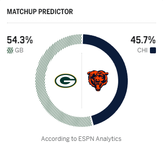 绿湾包装工胜率54.3%,芝加哥熊45.7%。