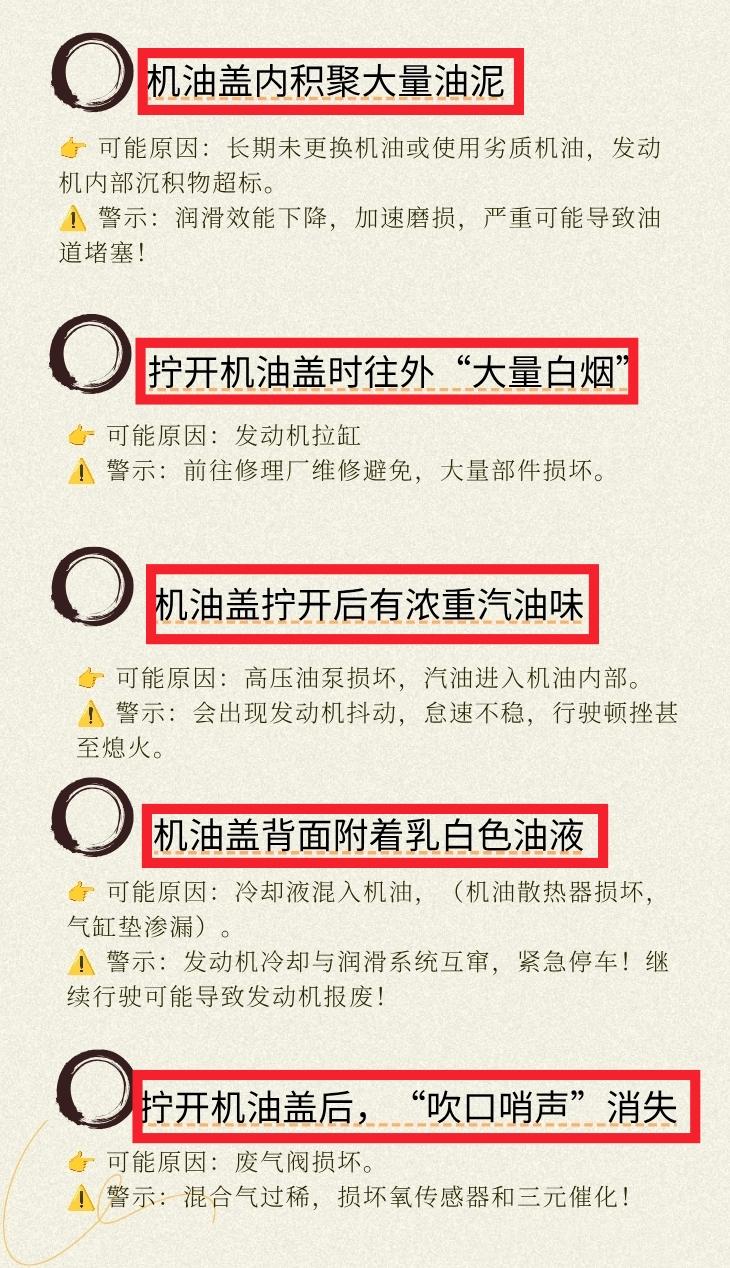 从机油盖判断汽车症状。