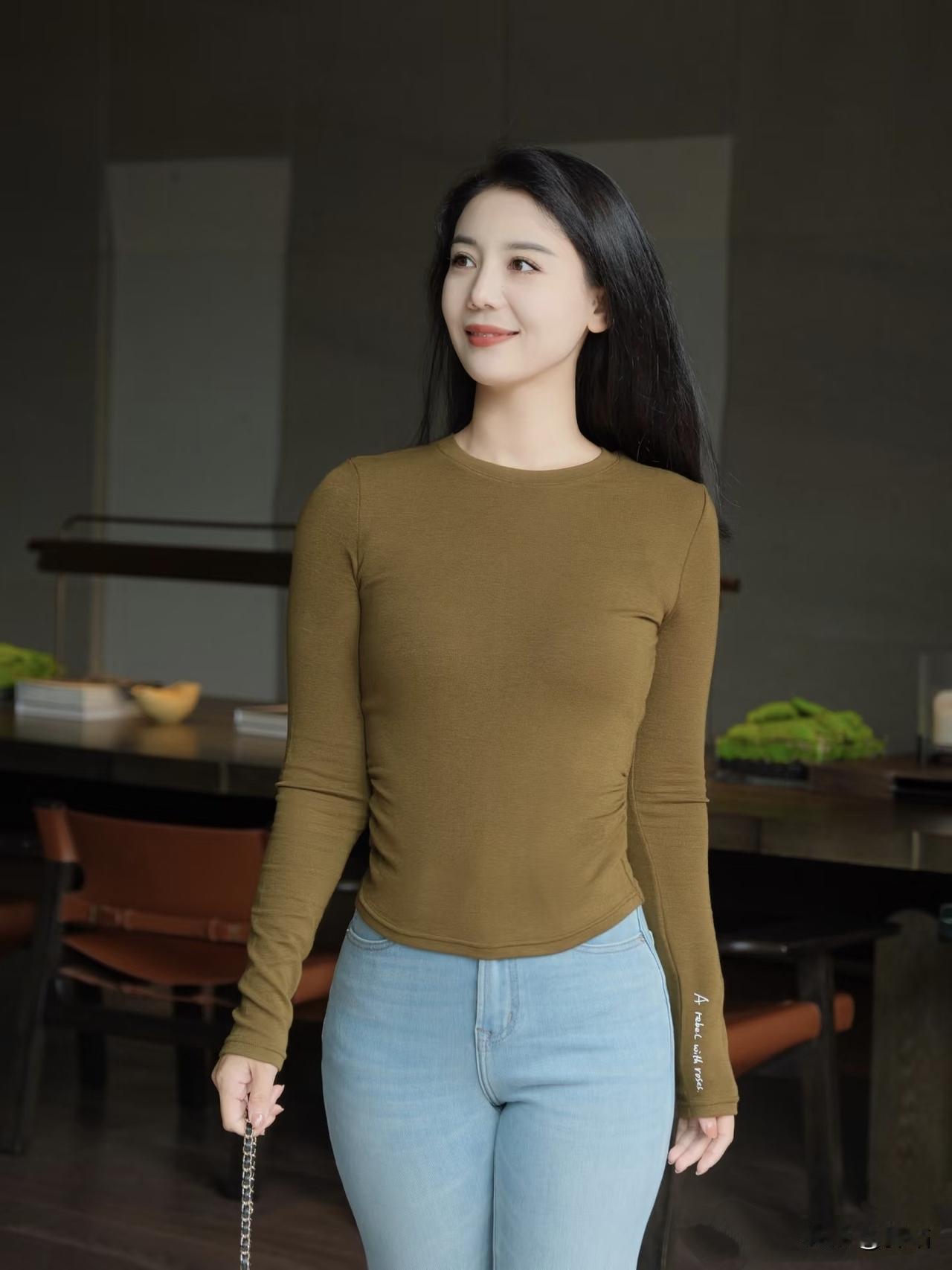 美图欣赏,看图写诗 《暖室闲影》 七言绝句 暖室晴光映褐衫, 青丝垂缕态嫣然。 轻旋笑倚檀桌畔, 一缕温柔入眼前。 现代诗 焦糖色的针织衫, 裹住了温暖。 浅蓝牛仔的纹路里, 藏着随性的慵懒。 长发垂落肩头, 像墨色的溪流。 转身时的笑靥, 揉和了窗边的光。 你坐在木桌上的模样, 是时光放慢了脚步, 悄悄写下的温柔篇章 图片来源于网络