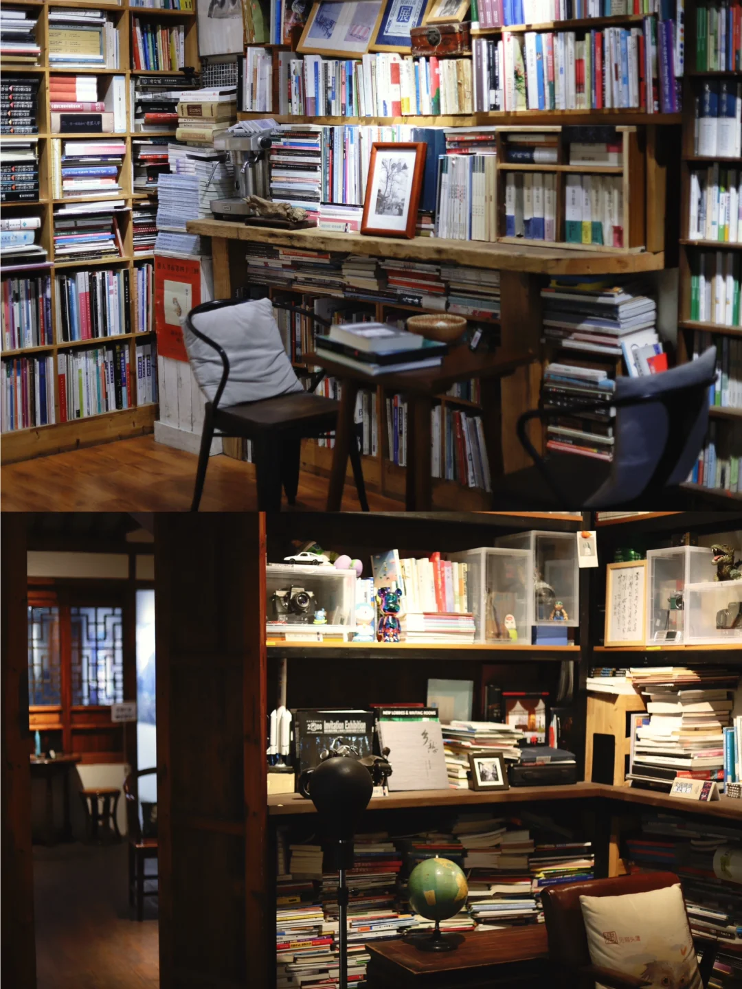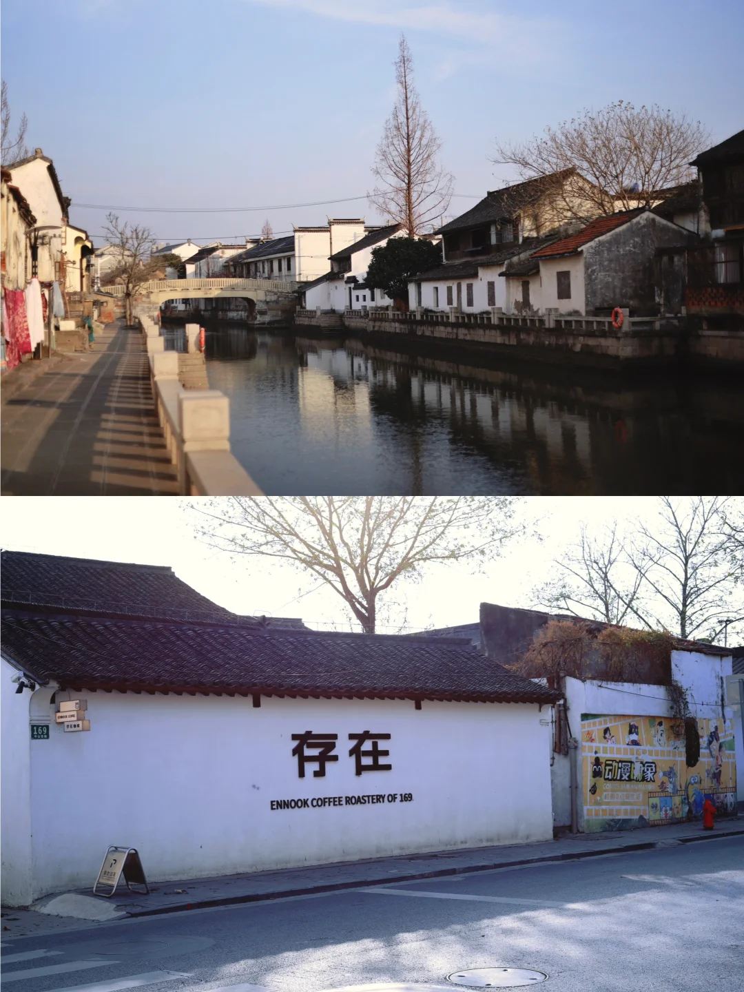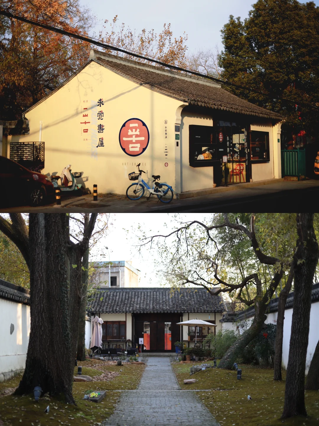 松江真的有很多宝藏咖啡店很适合发呆☕ 这两家离得很近,都在仓山老街附近,🅿️停车就停路边即可 - 1.存在咖啡 老宅子改造的,一面沿街一面临水,旁边就是河岸边。空间很大的三进宅院,总能找到一个喜欢的角落发呆。 阳光洒在白墙黑瓦和天井下,时间仿佛静止了。 - 2.未觉书屋 仿佛自家的藏书楼和百宝箱,有很多店主的老物件,像手办、相机等,很怀旧。 古色古香,可以看出店主很有格调。