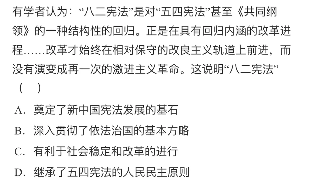 时代潮流,改革不一定适应历史潮流,排除D项。