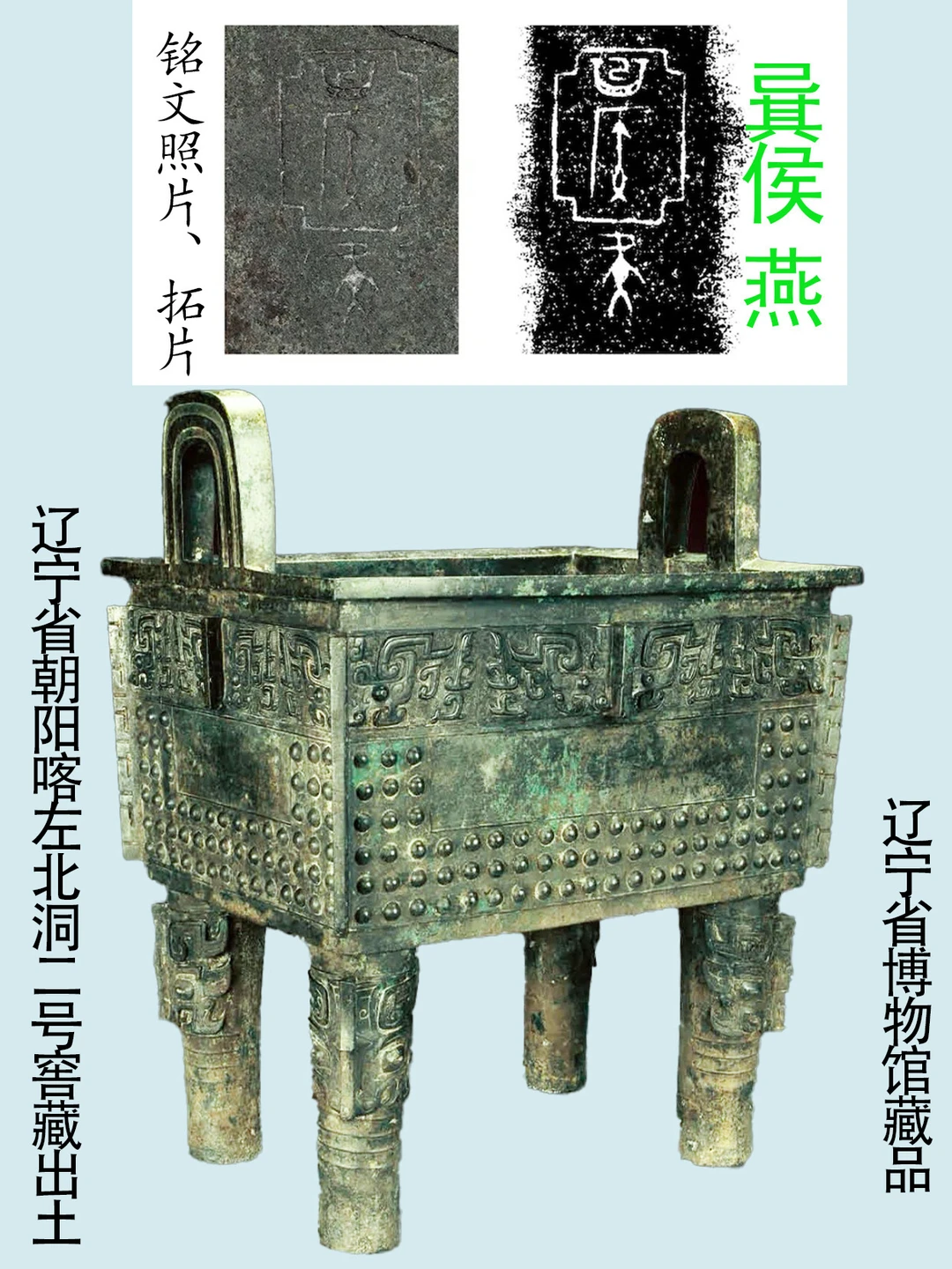 上篇笔记写了定名为“祖辛”鼎的原由。 湖北随州叶家山西周早期“曾侯”墓地,M111是明确的西周早期公侯M。该鼎是其陪葬器中最大、最重的,又是圆鼎“标准器”,显然,该鼎是周天子“作器”。对鼎铭文的识读、释读极其重要。 一、铭文释读顺序。 1、图三,三字释读,某祖辛,某字无法释读且这种释读顺序方式罕见。 2、图四、图五、图六,四字释读方式是西周常见的顺序。铭文:某祖戈辛,但铭文其意无法释读。 3、图七,按照左右各为一组释读,左边一组释读为:戈辛,右边一组释读为:某祖。这样的释读方式,涉及到西周联姻册封制,需要先确定该公侯的夫人氏族。 二、公侯其夫人氏族的确定。 1、戈辛,戈族徽,戈族是在商末西周早期的一个大氏族,已发现的“戈”氏族铭文数百件,其家族墓地已考古发掘,有兴趣的朋友可以去看看(图七,高家堡戈国墓)。 2、辛,显然戈辛是一体,表示其氏族含义。戈是族徽,辛应其“日名”的“父辛”,只是周人不用日名。(详细的可参阅张懋镕先生文章《周人不用日名》)。戈辛二字其意完整的应为:戈,父辛(图八,戈父辛很多,不叙述)。 3、图十、十一,叶家山M27位置示意图及M111盘龙罍与M27立鸟罍。 M27是夫人墓(只公布了部分资料,完整的考古发掘报告还未出),学界无争议。图十二,M27出土方座簋,铭文:燕父作宝樽彝,燕字,显然是该夫人的宗族名。 三、“燕”字的识读。 1、图十三、十四,“燕”字(还是矣字)的识读,当年争议极大,明确支持释读为燕的学者有:吴大澂、刘体智、郭沫若、邹衡、葛英会等学者。 由于对该字的识读、释读,学界一直分歧很大,相关通识方面采取了折中的意见,即采用侯仁之先生(当时中国科学院院士、历史学家、北京大学教授)的观点。 侯仁之先生的观点: 1、”燕不是周初所封,还在武王灭商以前,燕这个自然生长的国家(氏族)已经存在。” 2、“从西周的最初年代起,金文中不用作族徽的燕字一律写成匽,战国时代写作郾。”(这就是现在我们常看到的“匽”通“郾”,“郾”通燕字的观点的本源)。 结论,目前依据叶家山M111(公侯)“某祖,戈辛”鼎、M27(夫人)方座簋:燕父作宝樽彝、戈国(氏族)家族墓地的考古资料比对。 当年把该字识读、释读为燕的学者:吴大澂、刘体智、郭沫若、邹衡、葛英会等是对的。 周初的命名很复杂,不知写清楚了吗? 作者:九芒考古 下篇笔记写“某(雍)祖。 考古 祭祖 祭文 历史 清明 吴国