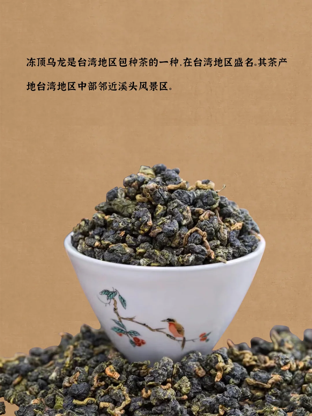 冻顶乌龙产自台湾南投鹿谷乡,传说因早期茶农需“冻着脚尖”登顶采摘(冻顶山坡度陡),故名“冻顶”。其实“冻顶”指当地多雾湿润的气候,茶树生长缓慢,茶叶品质更佳。