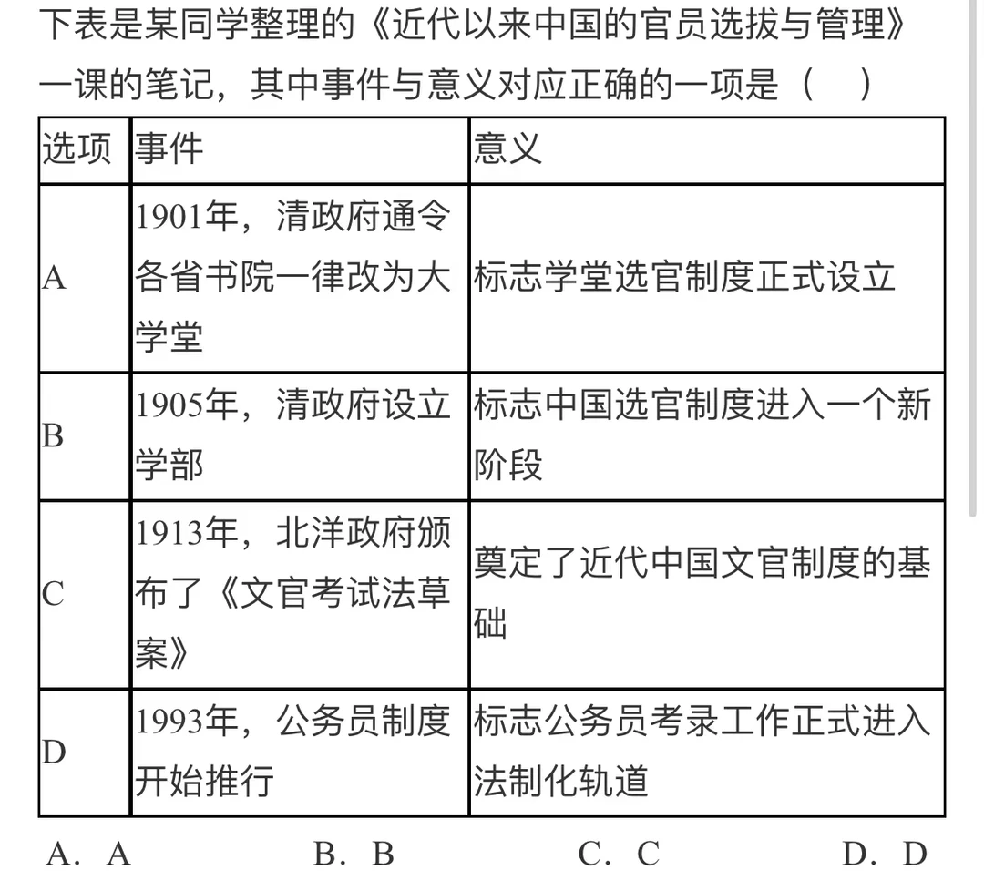 本题是单类型单项选择题。据本题主题干的设问词,可知这是推断题。据本题时间信息可知准确时空是:古代(中国)。根据材料信息“《大明律》规定:‘凡增减官文书者,杖六十“兄官文书稽(耽误)程者,一日吏典笞一十,三日加一等,罪止笞四十”可见明朝以法律手段保证文书工作的正常进行,严惩擅改或延误,C项正确;