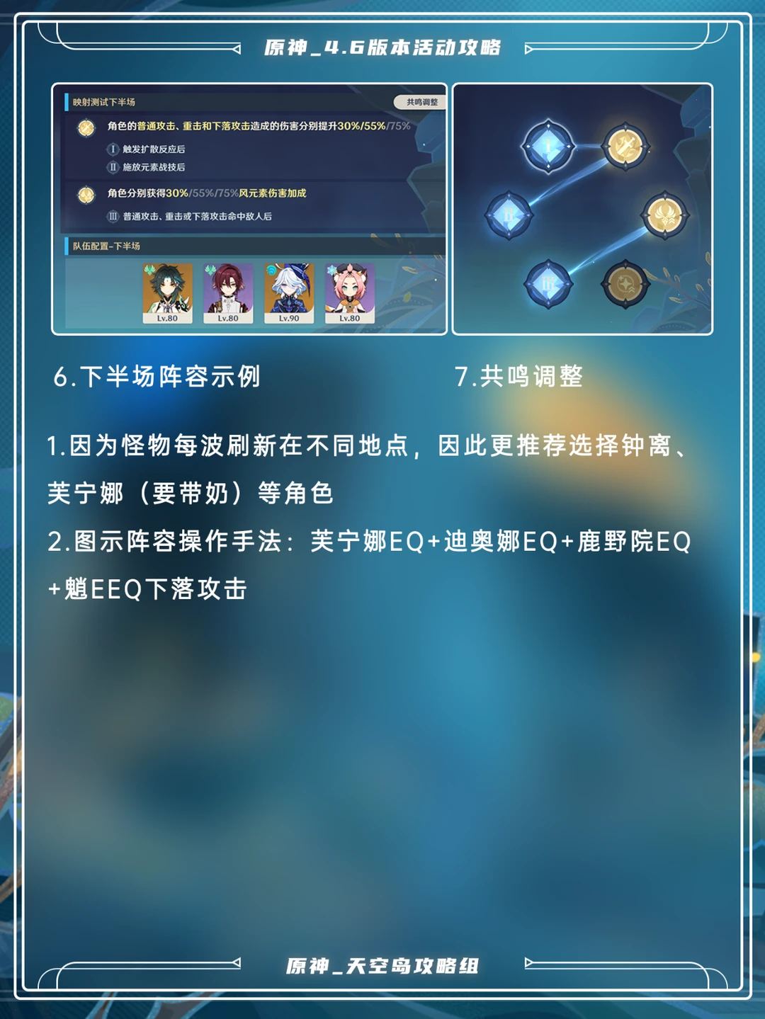 4.6振晶的应用研究第一关[哇R] 可直接传送到活动位置,推荐倍率选x10 上半:流浪者、珐露珊、夜兰、香菱 下半:魈、鹿野院平藏、芙宁娜、迪奥娜