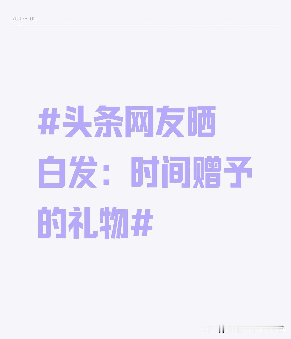 头条网友晒白发:时间赠予的礼物 最近看到头条网友晒白发,说这是时间赠予的礼物,还挺有感触的。前央视主持人亚宁复出,56岁已是满头白发,他也把白发当作岁月的礼物。想当年,他主持的《中国音乐电视》《同一首歌》那可是风靡一时。现在他面对白发很坦然,说头发有点“叛逆”,但自己喜欢,还让大家别操心。 其实,白发就像生活的勋章。有些人退休后也选择不染发,大方展示白发。白发见证了我们的经历和成长,它或许不够完美,却有着独特韵味。就把它当成时间给的特别礼物吧!