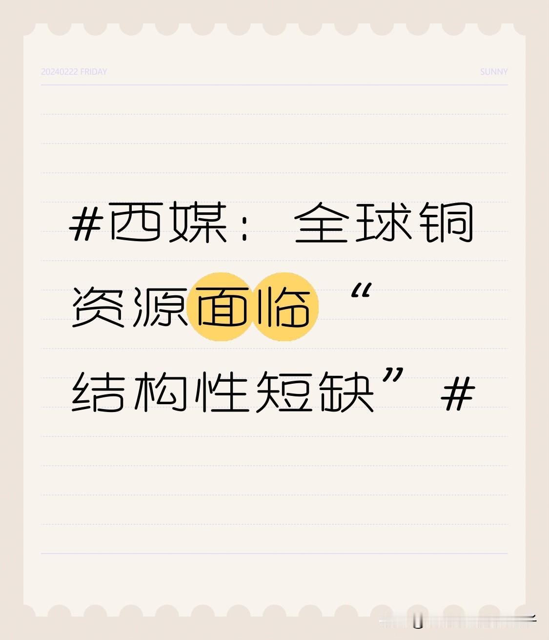 西媒:全球铜资源面临“结构性短缺” 全球铜资源面临“结构性短缺”这事可一点都不夸张。从2026年起,铜供应就不太能跟上需求了。随着电气化和人工智能发展,需求增长远超新增供应,铜价不断刷新纪录。到2045年,能源转型相关的铜需求将增长3倍。 这短缺背后,是需求增长与新项目启动缓慢的冲突。智利、印尼和秘鲁等地铜矿开采中断,审批流程又慢,让供应更紧张。像风力涡轮机一台要5吨铜,电动车用铜量是燃油车四倍。要实现能源转型,电网规模得翻倍,可新矿开采平均要17年,2030年铜市场预计会有20%的供应缺口,这问题真得重视了。