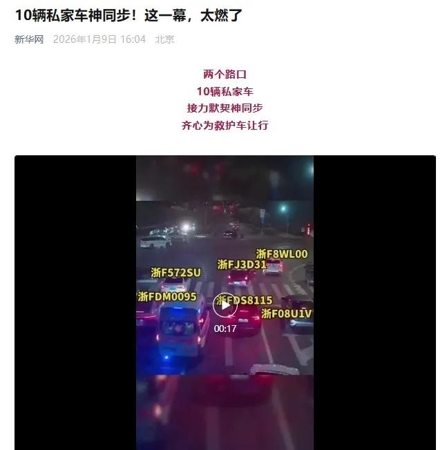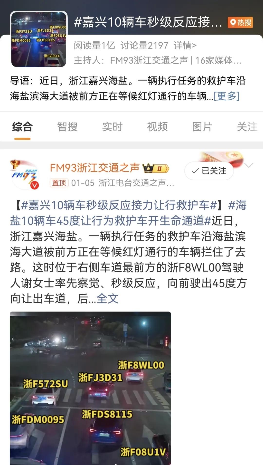 【今天,新华社、央视点赞海盐10人】日前,海盐街头上演了暖心一幕。晚高峰期间,一辆正在执勤的救护车沿滨海大道由南向北鸣笛疾驰。在两个路口接连遇到等红灯的车流。让人欣喜的是,等候的10辆私家车不约而同,默契接力“45度让行”,为救护车快速开辟生命通道,展现了海盐这座文明城市的风采。这一暖心举动获新华社、央视新闻、新华每日电讯、人民网、新华网、央视网、直播中国、美丽浙江等20余个媒体平台转发点赞,全网阅读量达1亿。详见:网页链接