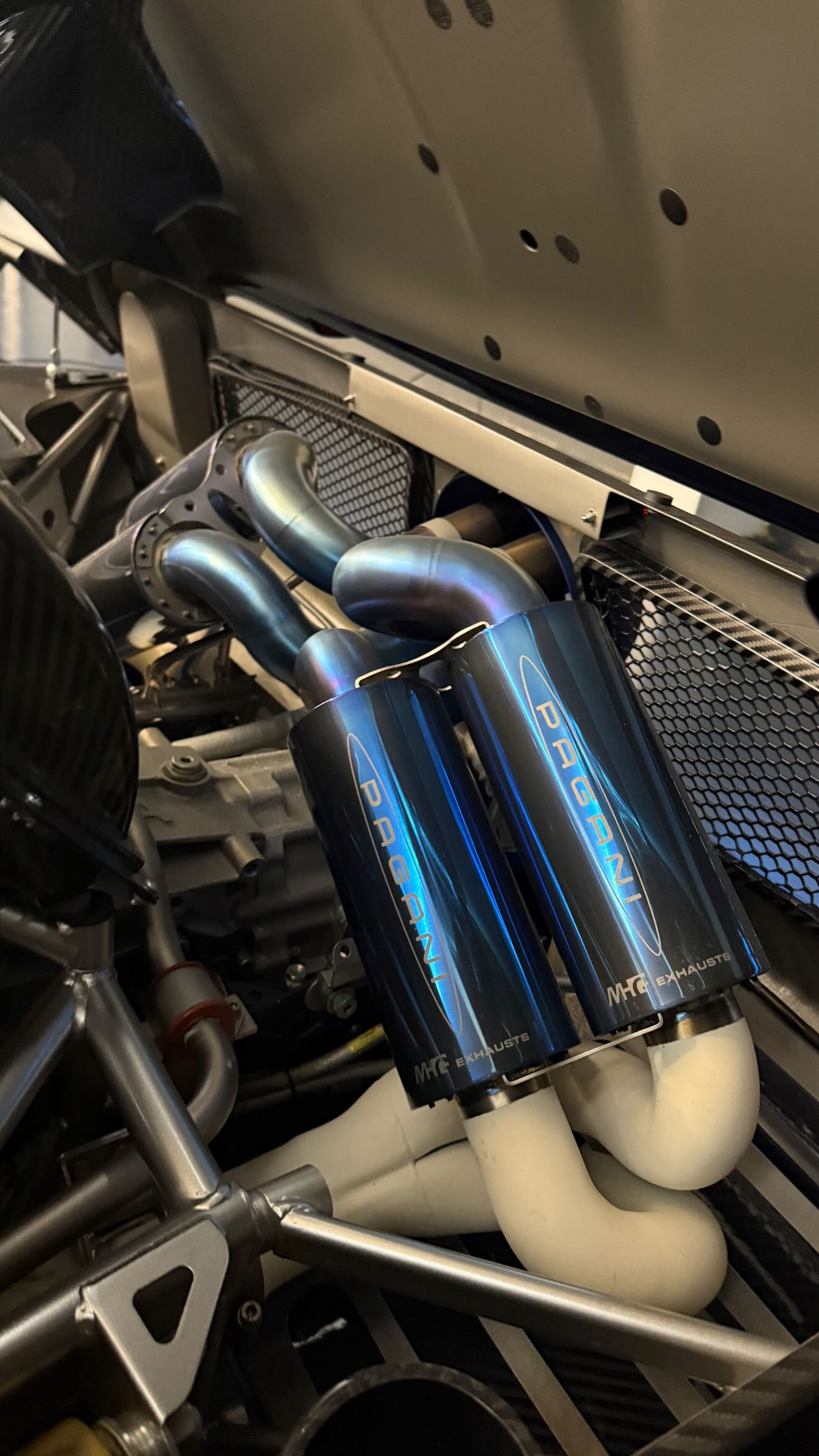 Zonda by Mileson采用全新碳钛底盘按760制式打造;搭载AMG 7.3L v12自然吸气发动机,六速序列式手动变速箱,最大可爆发出760匹马力,峰值扭矩可达780牛米,整车采用蓝碳橙粉搭配蓝色拉花(车身两侧从车头延伸至车尾部、类似与Zonda R的小型进气口、前唇、侧裙、前轮拱、从车窗两侧环绕至尾驾驶舱后、后车壳NACA管道、车顶进气口、定制鲨鱼鳍定风翼、尾翼、轮毂以及后扩散器都有蓝色拉花进行点缀),拥有类似于Zon