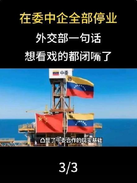 遭美袭击后委街头巷尾乱作一团!为了确保在当地的中国员工安全:我大使馆急告所有中企暂停运营! 一些西方媒体见状,立刻抓住机会大肆炒作说“中国熊猫要从委内瑞拉撤了”,结果这话刚传出来,就被咱们外交部一句话直接戳穿:中委两国的合作是受法律严格保护的,绝对不会因为当地政局有什么变动就中断。 这波操作可真是太经典了!咱们熊猫企业这么做,明明就是为了让在当地的员工能安全避险,却硬生生被歪曲成是“落荒而逃”。有些国家啊,就喜欢看别人出乱子,巴不得咱们熊猫在南美的影响力变小。 但现实可就打他们脸了——现在的委内瑞拉,想要重建可离不开咱们熊猫的帮助。你想想啊,现在的委内瑞拉,石油产业早就陷入停滞,欠的债务也越积越多,不管谁上台当政,都得找个值得信赖的合作方来帮忙。咱们熊猫这些年在当地积累的各种资源和人脉,哪里是说换就能轻易替代的? 更讽刺的是,就连这次突然袭击委内瑞拉的美国,后来也公开表示还要继续跟咱们熊猫卖石油。这事儿不就说明嘛,国与国之间的关系哪有什么非此即彼的,在利益面前,谁都不傻。 现在就看接下来当地的局势会怎么变化了。但有一点肯定的是:咱们熊猫既不会当吃亏的冤大头,也不会轻易放弃这么多年辛辛苦苦经营下来的东西。这场较量,才刚刚拉开序幕,接下来会发生什么,咱们接着瞧!