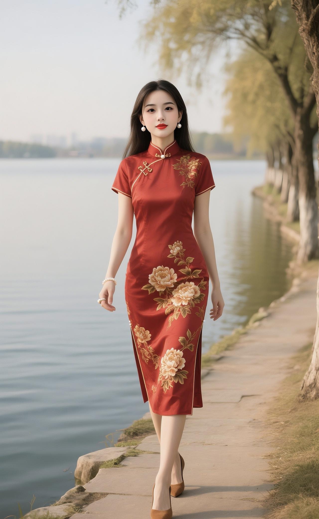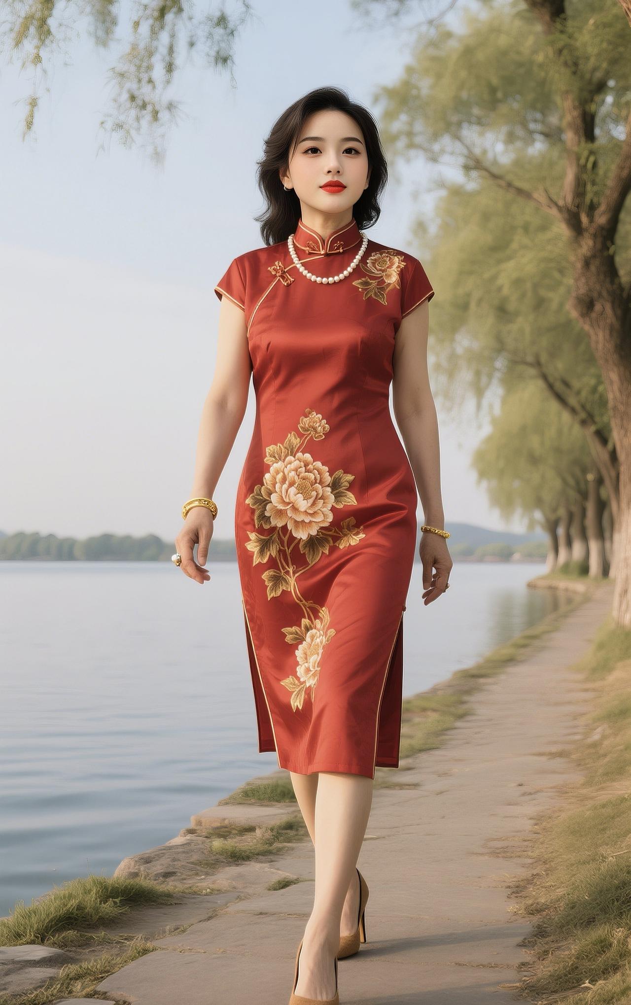《旗袍:把东方韵,穿在身上》 一块绫罗,裁下江南的烟雨 几针苏绣,绣出塞北的流云 盘扣是锁,锁住千年的温婉 开衩是河,淌着东方的风情 立领挺括,如青竹傲立春风 斜襟婉转,似流水绕过长亭 丝绒裹着月色,锦缎映着霞明 每一寸褶皱,都藏着诗的平仄 行走时,是柳丝轻摆的婀娜 驻足时,是水墨晕开的宁静 不张扬,却自有风骨亭亭 不浓烈,却让岁月温柔成景 把山水穿在肩上,把花鸟绣在衣襟 旗袍是行走的画,是无声的琴 将东方的韵,揉进一针一线 穿在身上,便成了最美的光阴 旗袍风上衣 东方旗袍高定 江南墨旗袍 旗袍设计绣 旗袍面料设计 手工亮片旗袍