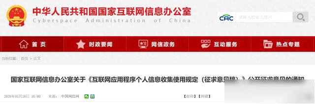 1月10日,记者从国家网信办获悉,为规范互联网应用程序个人信息收集使用活动,保护个人信息权益,促进个人信息合理利用,根据相关法律法规,国家互联网信息办公室起草了《互联网应用程序个人信息收集使用规定(征求意见稿)》,并向社会公开征求意见。