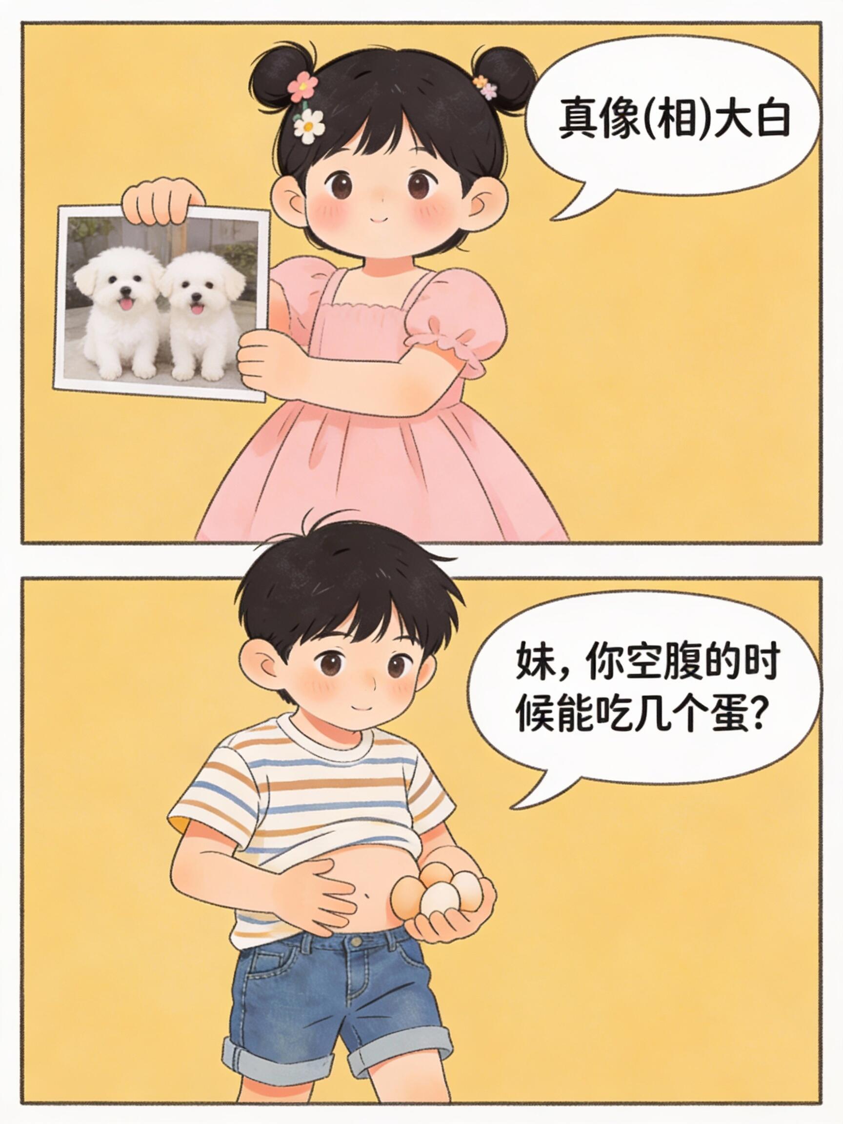 妹妹,公鸡在屋顶下蛋,蛋会往哪边掉?公鸡根本就不会下蛋