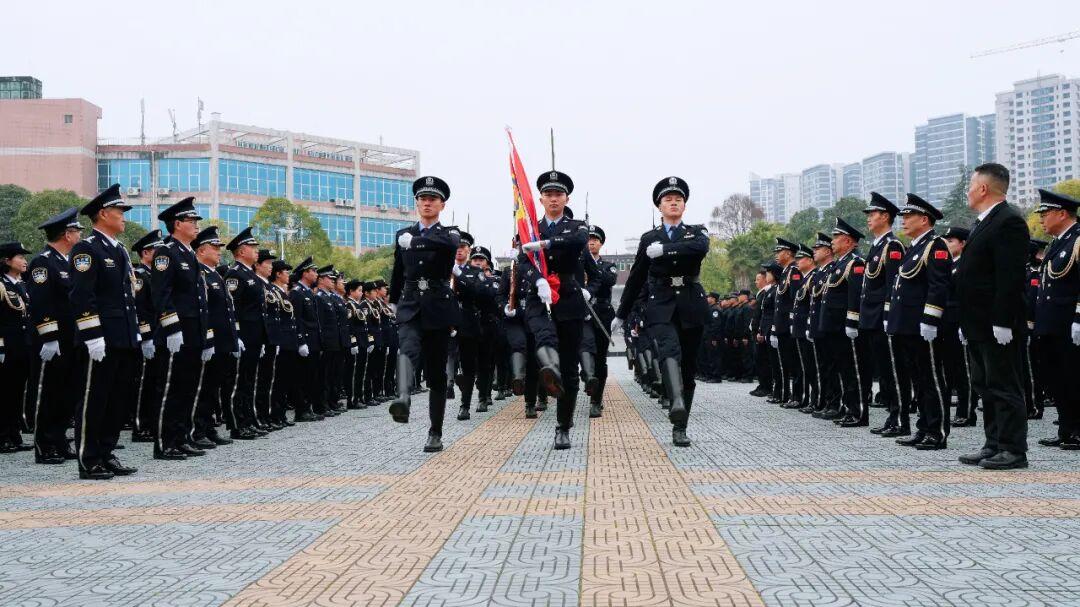 随着主持人宣布仪式开始,鲜艳的警旗在雄壮的《中国人民警察警歌》中冉冉升起,全体人员肃立致敬。