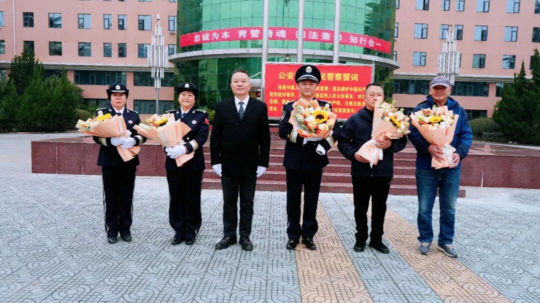 随后,在场人员高举右拳,齐声重温《公安机关人民警察誓词》,铿锵有力,回荡全场。