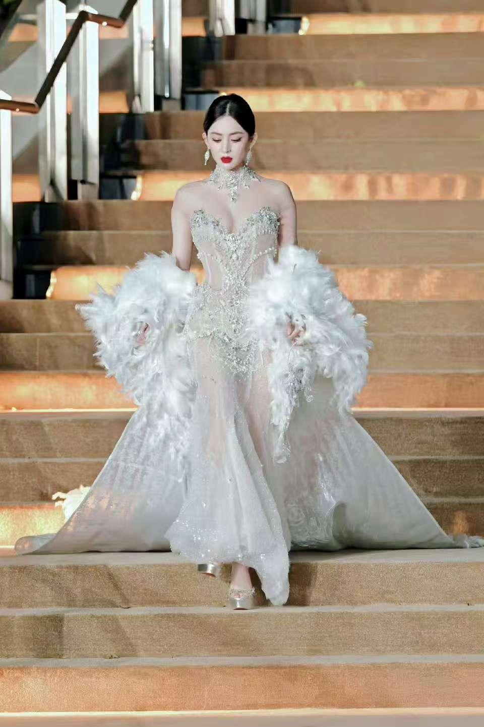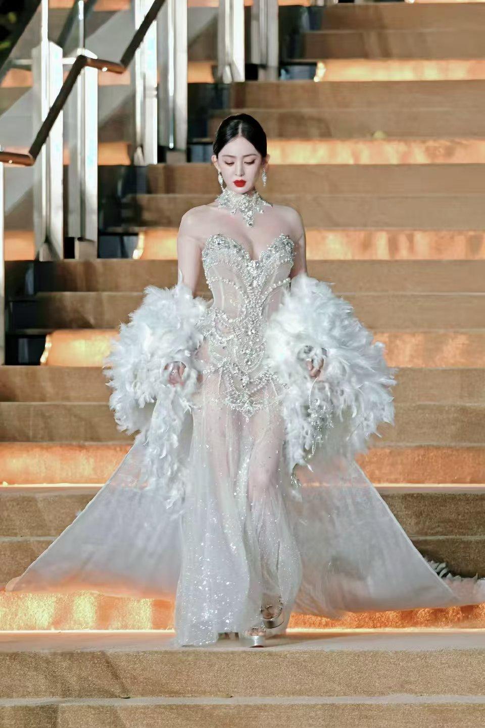 娜扎的红毯造型一次又一次刷新颜值天花板,从鎏金楼梯上缓缓走下的瞬间,直接让全网网友看呆了!一袭白色羽毛钻饰礼服把她的好身材勾勒得淋漓尽致,闪钻拼接的深V设计秀出精致锁骨和曼妙腰肢,蓬松的白色羽毛披肩又添了几分高贵的天鹅感,搭配冷艳红唇和利落盘发,颜值直接美到让人窒息,这红毯造型说是“封神级”一点都不夸张!