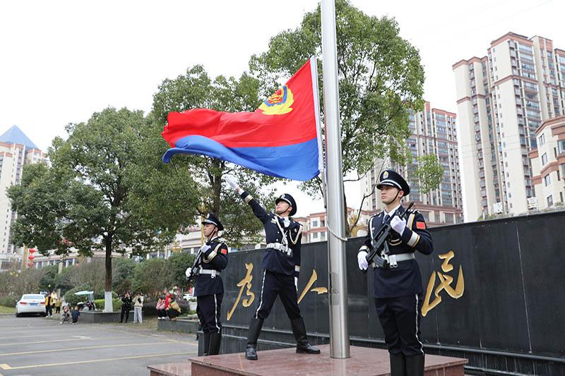 仪式于上午9时正式启动。全体民辅警整理着装、列队肃立;执旗手与护旗手迈着正步,护送中国人民警察警旗走向旗杆。当雄壮的《中国人民警察警歌》奏响,警旗缓缓升起,在场民辅警目光坚定、警容严整,纷纷向警旗致以崇高敬礼,用肃穆姿态传递对公安事业的敬畏与热爱。