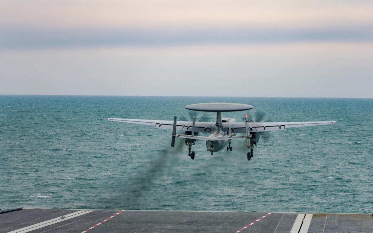 在福建舰航母上进行电磁弹射起飞和着舰训练的舰载机歼-35隐形战斗机、歼-15T重型战斗机和空警-600预警机。