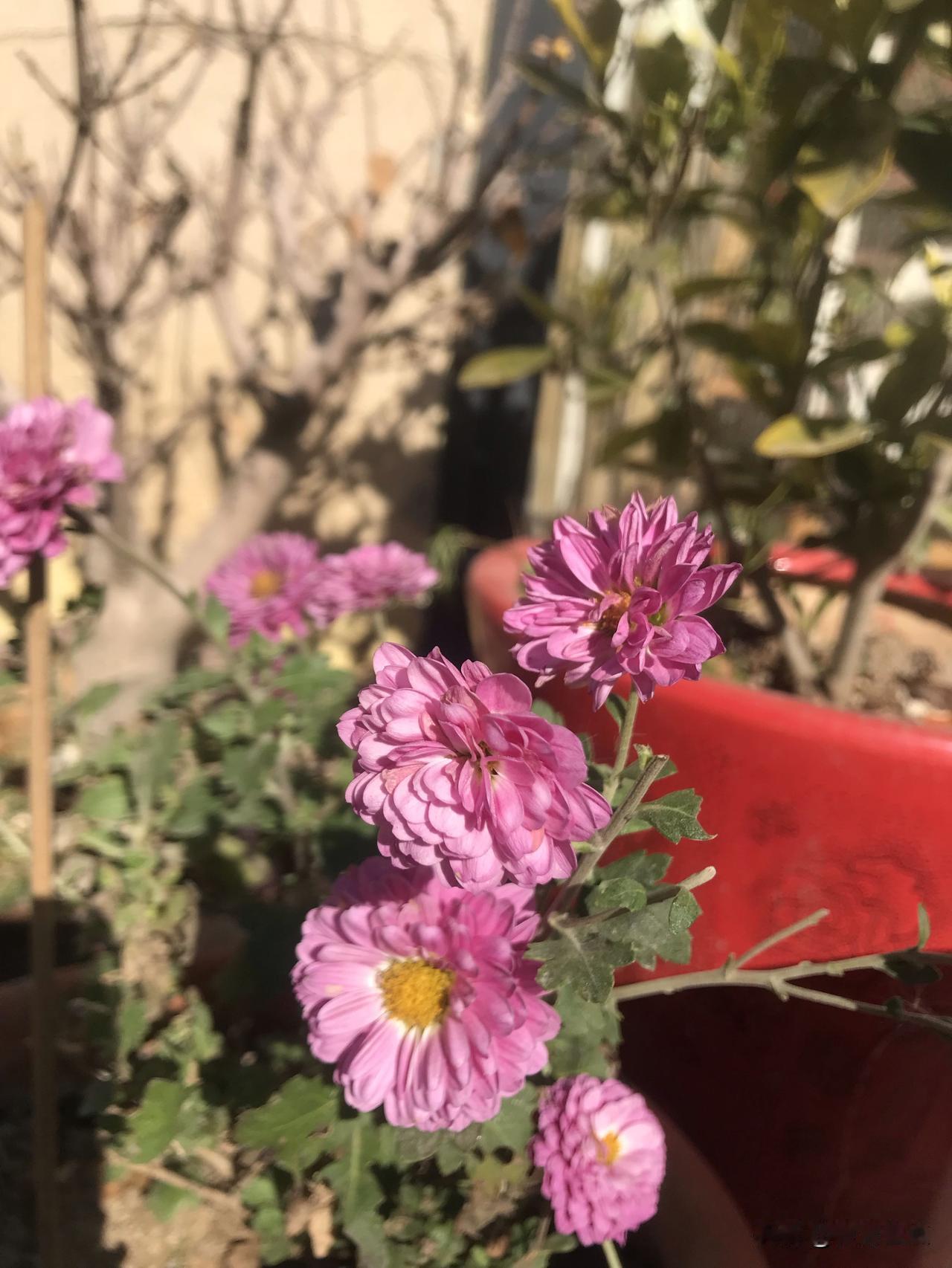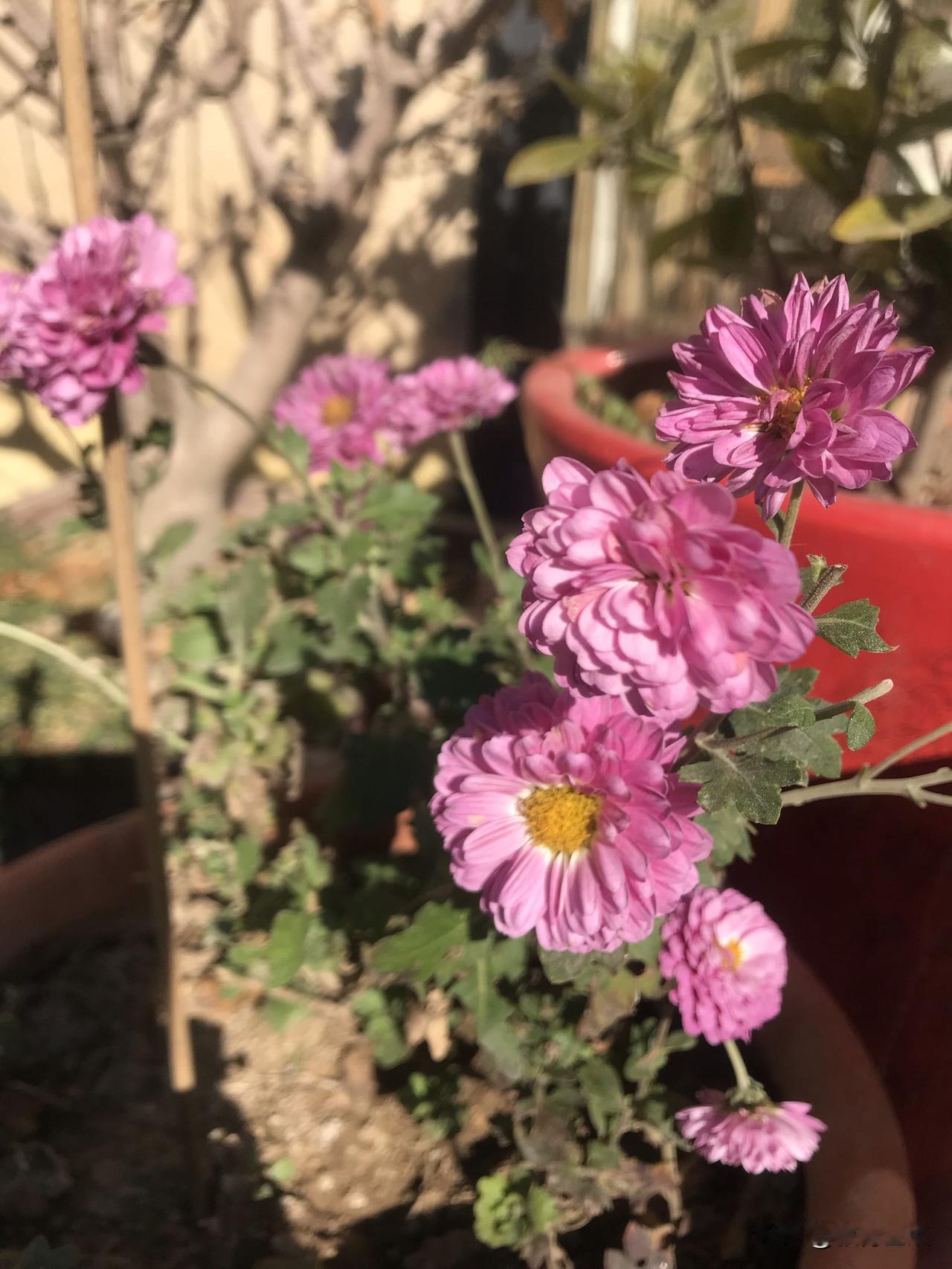 晋陶渊明独爱菊。原来对这句话没有体会,只到家中养了几盆菊花,才有一点点的理解。陶渊明《饮酒·其五》中曰:结庐在人境,而无车马喧。问君何能尔?心远地自偏。采菊东篱下,悠然见南山。山气日夕佳,飞鸟相与还。此中有真意,欲辨已忘言。元稹《菊花》云:秋丛绕舍似陶家,遍绕篱边日渐斜。不是花中偏爱菊,此花开尽更无花。黄巢《不第后赋菊》写得要霸气得多:待到秋来九月八,我花开后百花杀。冲天香阵透长安,满城尽带黄金甲。郑思肖《寒菊》 :花开不并百花丛,独立疏篱趣未穷。宁可枝头抱香死,何曾吹落北风中。宋·李清照《醉花阴·薄雾浓云愁永昼》:薄雾浓云愁永昼,瑞脑销金兽。佳节又重阳,玉枕纱厨,半夜凉初透。东篱把酒黄昏后,有暗香盈袖。莫道不销魂,帘卷西风,人比黄花瘦。宋·苏轼《赠刘景文》:荷尽已无擎雨盖,菊残犹有傲霜枝。一年好景君须记,最是橙黄橘绿时。 已是数九寒冬,我家院子里的菊花依然绽放。凌霜绽放、不与群芳争艳,其淡泊名利、清雅自持的风骨,难道不令人景仰吗?