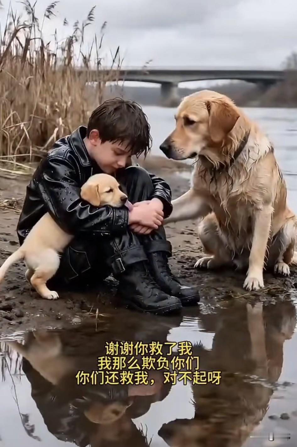 泪目了!一只可怜的流浪狗妈妈一直过着居无定所,风餐露宿的生活,有一天它在一个垃圾桶找吃的,结果一群顽皮的孩子发现了它,居然用石头砸它,它被打的嗷嗷大叫,却始终没有回击。 这天它正在河边带着孩子休息,突然听到有孩子落水的声音,于是它来不及多想直接跳入水中把他救了上来,而这个孩子居然是曾经用石头砸它的其中一个孩子,狗狗选择了以德报怨,虽然孩子伤害过它,但作为妈妈,都会对孩子宽容,而它的宽容令小男孩非常感动,也认识到自己的错误了,于是他向狗狗道歉,回去也和爸妈坦白了一切,还要求收养它们,最终小男孩收养了这对狗狗母子,他们也成了最好的朋友!相信在他们的照顾下,狗狗也会越来越好的。