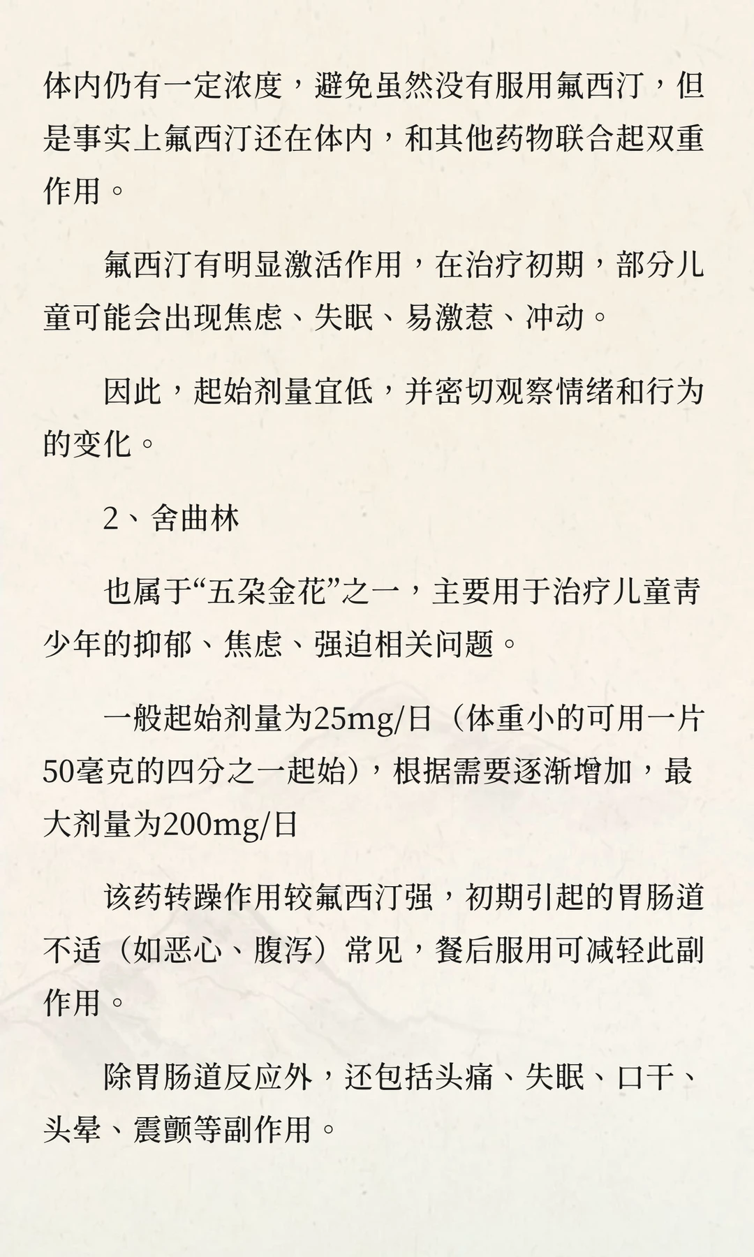儿童青少年心理障碍常用的12个药物特点