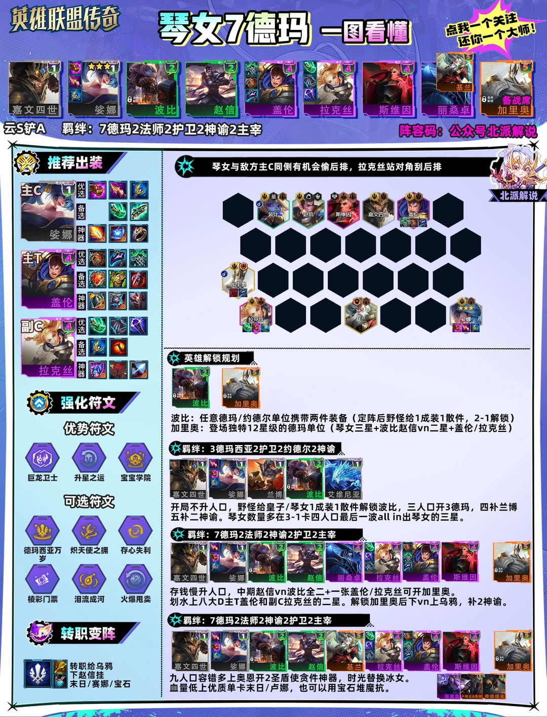 加里奥:同时登场独特的累计12星级的德玛单位(琴女三星+波比赵信vn二星+盖伦/拉克丝)