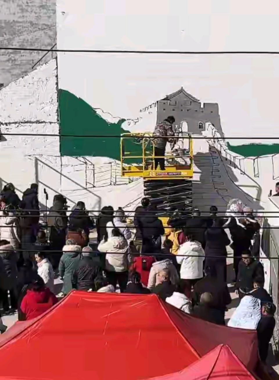 看了天安门墙绘好几个模仿者,目前来看,没有一个能媲美吴承言的! 立体感,细节,光影,技法等各方面,都比不了! 我不是刻意贬低其他地方的模仿,每个地方都有自己的特色。 单纯从视觉效果来看,吴营村的天安门墙绘感觉最好! 这与吴承言扎实的基本功分不开,他作画大开大合,几乎不打草稿,中间还要满足游客和粉丝的合影要求,真不容易!