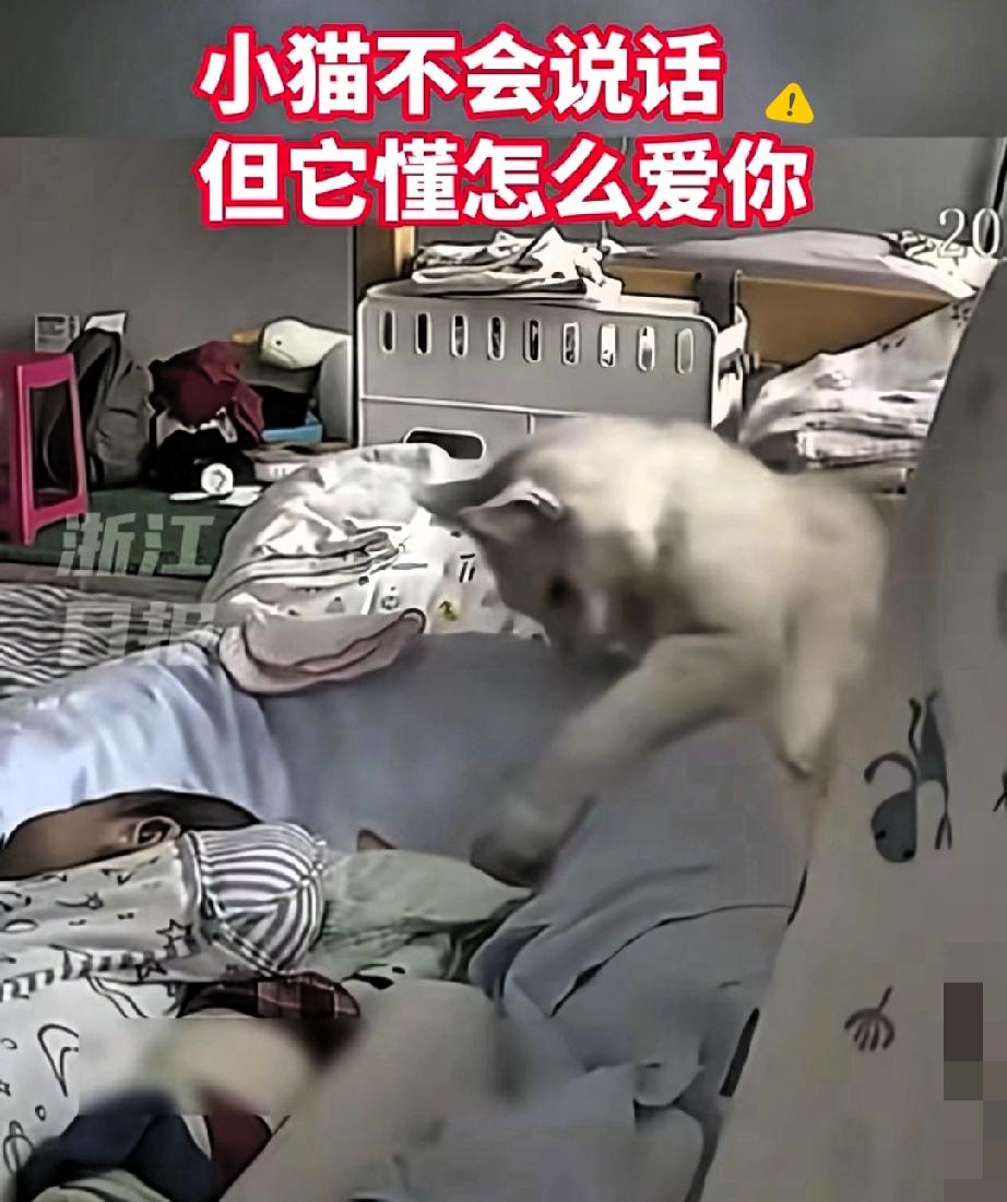 第一次和宝宝独处的小猫,居然成了最靠谱的“守护神”! 北京丰台这只小猫的操作,直接把网友暖到心坎里—— 姥爷进屋想看宝宝,小猫瞬间警觉起身,见姥爷靠近就立刻上前驱赶,直到姥爷离开、门关上,它才放下警惕,还温柔地趴在宝宝身边轻轻抚摸。 很多人觉得猫咪高冷,可在这份护娃的举动里,藏着最纯粹的温柔。 它不会说话,却能敏锐察觉到陌生的气息,用自己的方式守护小主人,这份本能的善意,比任何刻意的表达都动人。 其实宠物从不是简单的玩伴,它们早已把自己当成家庭的一份子,用独有的感知力,默默守护着家里的每一个人。 你家宠物有没有做出过让你瞬间暖心的举动?来评论区分享一下这份可爱的治愈吧~