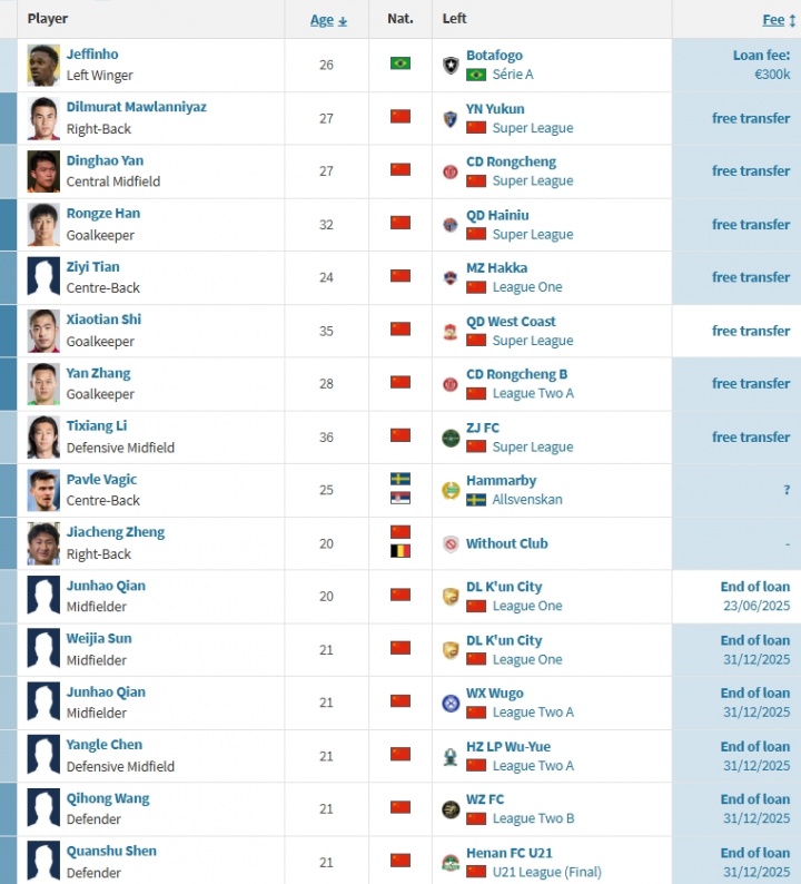 直播吧01月11日讯据德转显示,辽宁铁人签下热菲尼奥、瓦吉奇、严鼎皓、迪力穆拉提、郑家骋、张岩6名球员。