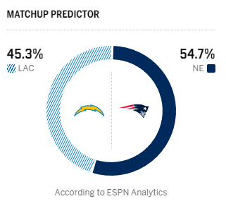 洛杉矶闪电胜率45.3%,新英格兰爱国者54.7%。