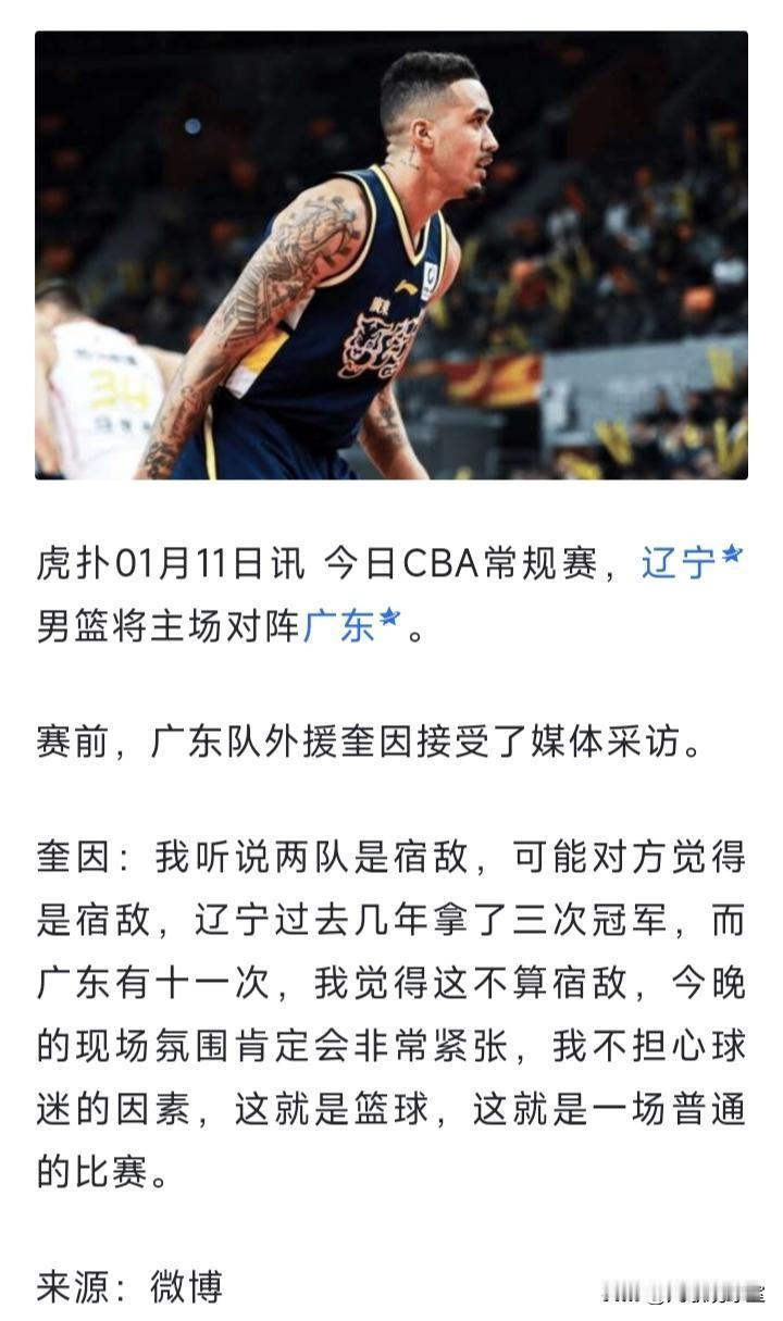 口气不小!广东外援奎因竟然质疑辽宁不配当广东的宿敌,当他听到队友萨姆纳说今晚的对手辽宁是广东队的宿敌时,他持不同意见,他认为辽宁最近才拿的三连冠,总共也才拿了4次总冠军,在此之前广东已经拿了11次总冠军,冠军数广东遥遥领先辽宁,真正比起来,辽宁并不算是广东的宿敌!