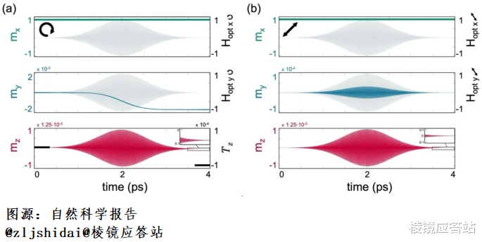 但希伯来大学电气工程与应用物理研究所的AmirCapua博士和BenjaminAssouline通过Landau-Lifshitz-Gilbert(LLG)方程的高级计算证明,光的振荡磁场能够在材料内部产生磁力矩,其作用方式类似于静态磁场。