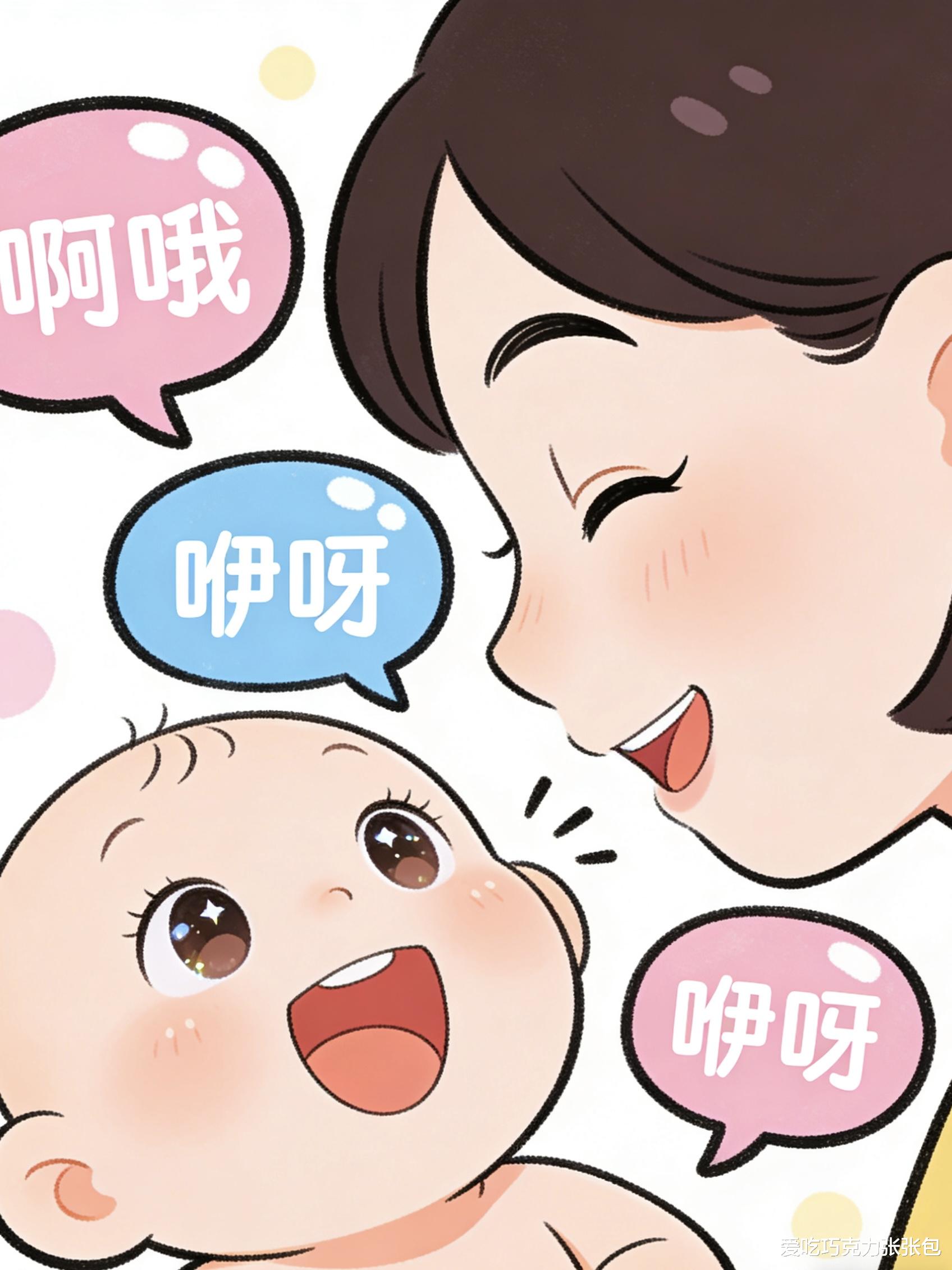 如果宝宝发出“啊”“哦”,立刻回应:“你在说‘妈妈’吗?我在呢!”(让宝宝觉得交流有回应,增强表达欲望)