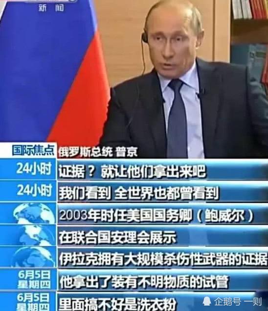 美国国务卿鲍威尔在结合国展现伊拉克具有杀伤性兵器的证据时,普京这样说: