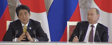 当日本首相安倍讲话,普京等待翻译是,是这样的: