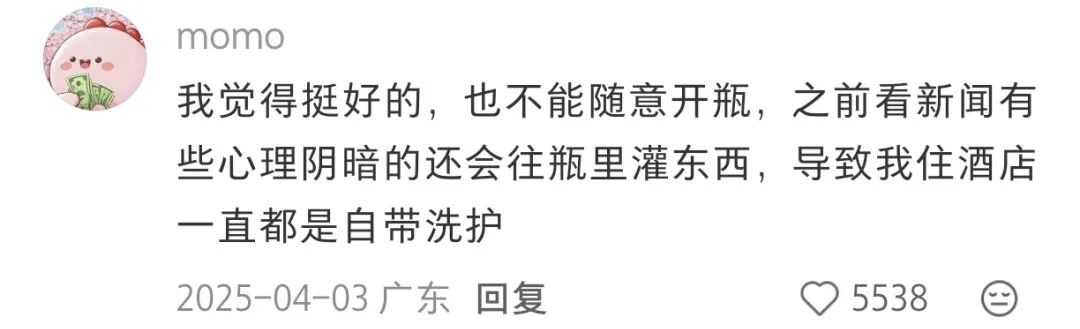 “你知道上一位客人往沐浴露里塞过什么吗?烟头、口香糖、甚至不明液体。我们赔过钱、上过热搜,把瓶盖锁死,就是想告诉你:这瓶没人能拧开往里加东西。”