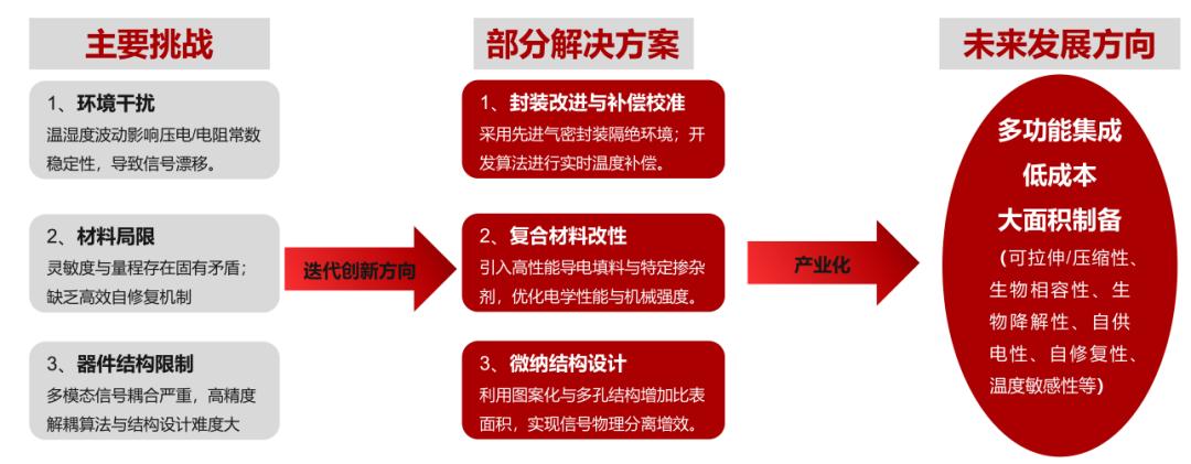 下游:主要包括医疗、人机交互、机器人、智能穿戴、安防等领域,医疗健康监测、仿生机器人、可穿戴人机交互为三大核心应用场景。医疗领域主要应用于远程健康监测、智能假肢与康复医疗、新生儿与老年护理等;机器人领域主要应用于灵巧手;人机交互与虚拟现实领域则主要应用于智能汽车座舱与AR/VR触觉交互。