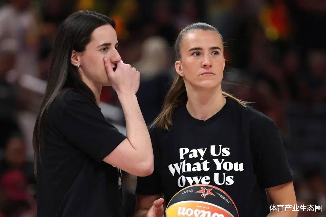 在7月份的WNBA全明星赛期间,在正赛开始前的热身环节,两支全明星队伍——「克拉克队」和「科利尔队」的22名球员,全部身穿印有「Pay Us What You Owe Us(支付我们应得的)」字样的黑色T恤,集体向联盟传达她们对薪资结构调整的强烈诉求。